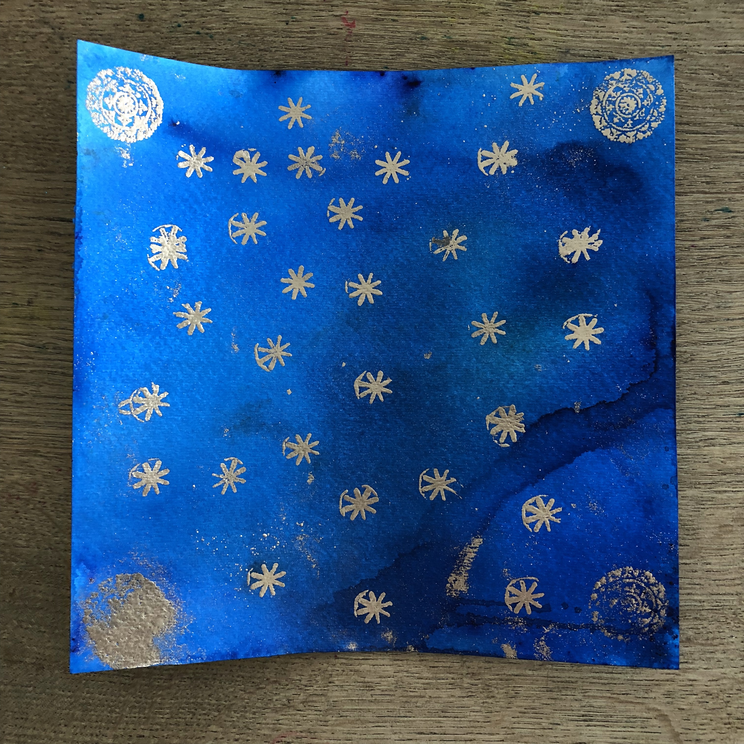 - see video for creating the blue background with watercolor crystals
