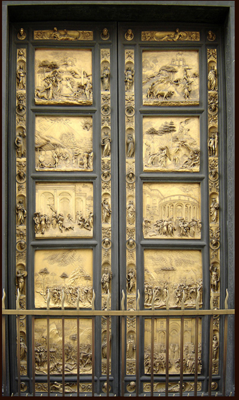 - Inspired by the relief panels on Ghiberti’s bronze doors on the Florence Baptistry