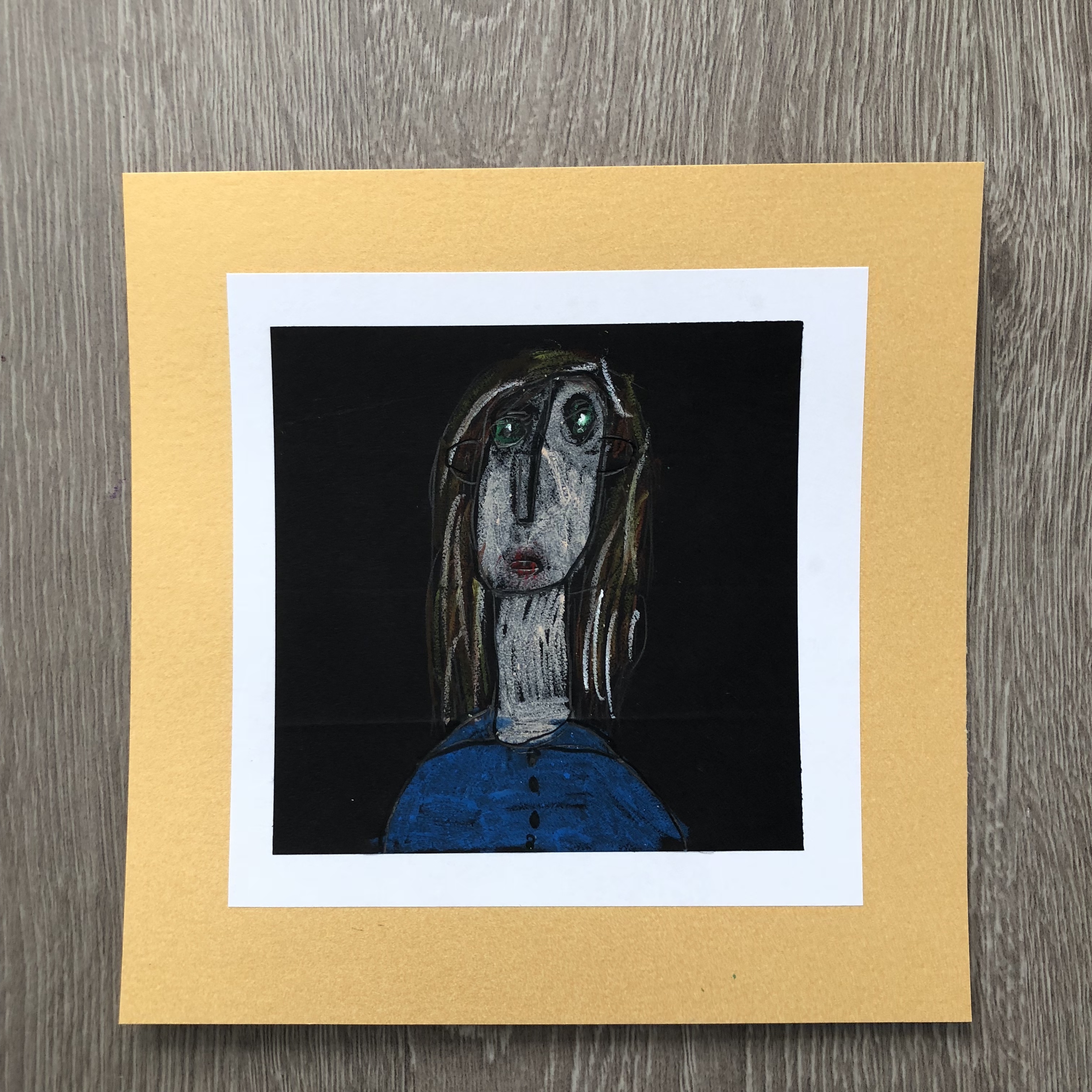 - See video for applying color with oil pastel to elongated portrait [note: this video was made for a different project, but the steps are the same]