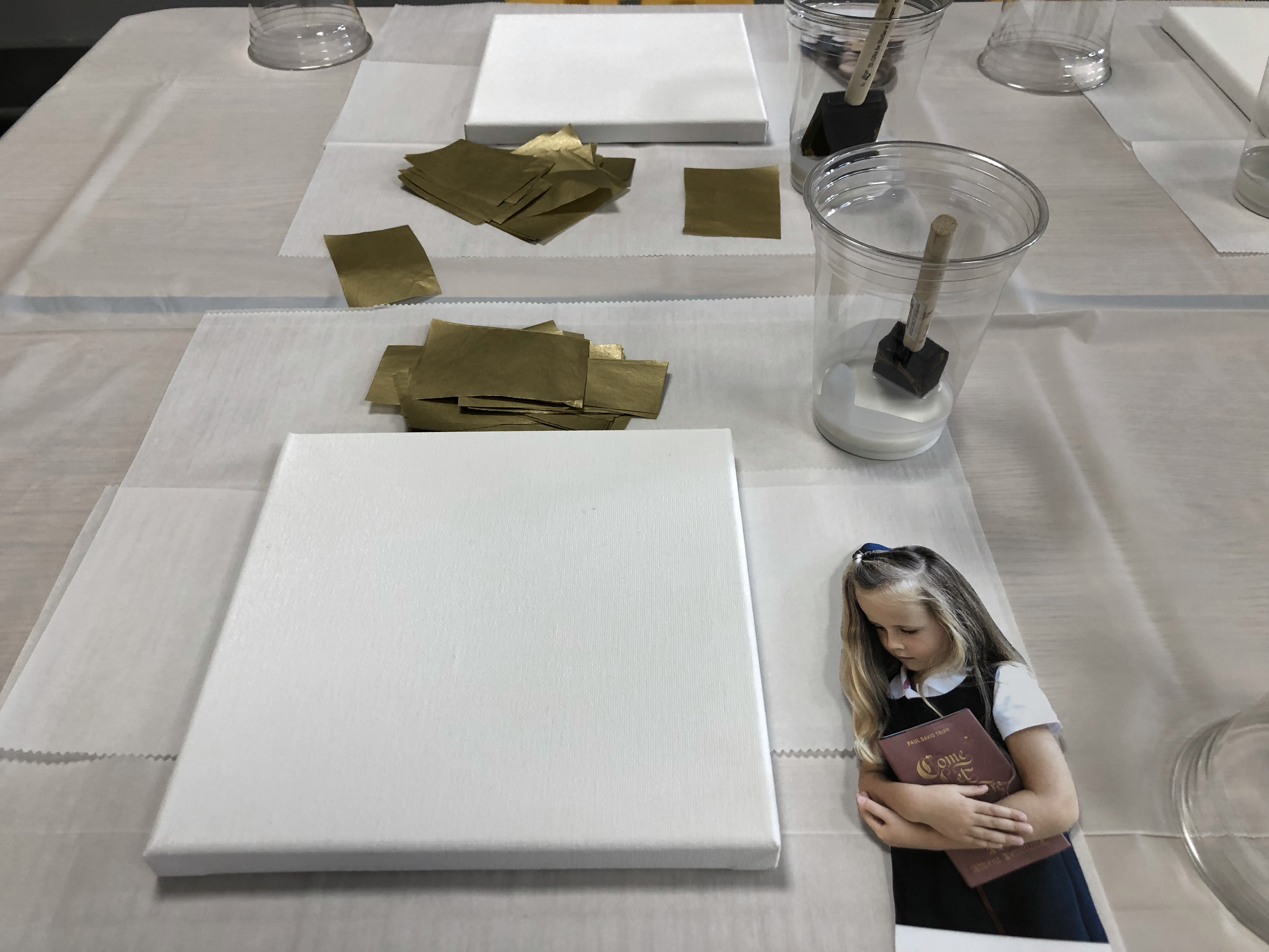 - pre-cut gold tissue paper in small recatngles prior to class