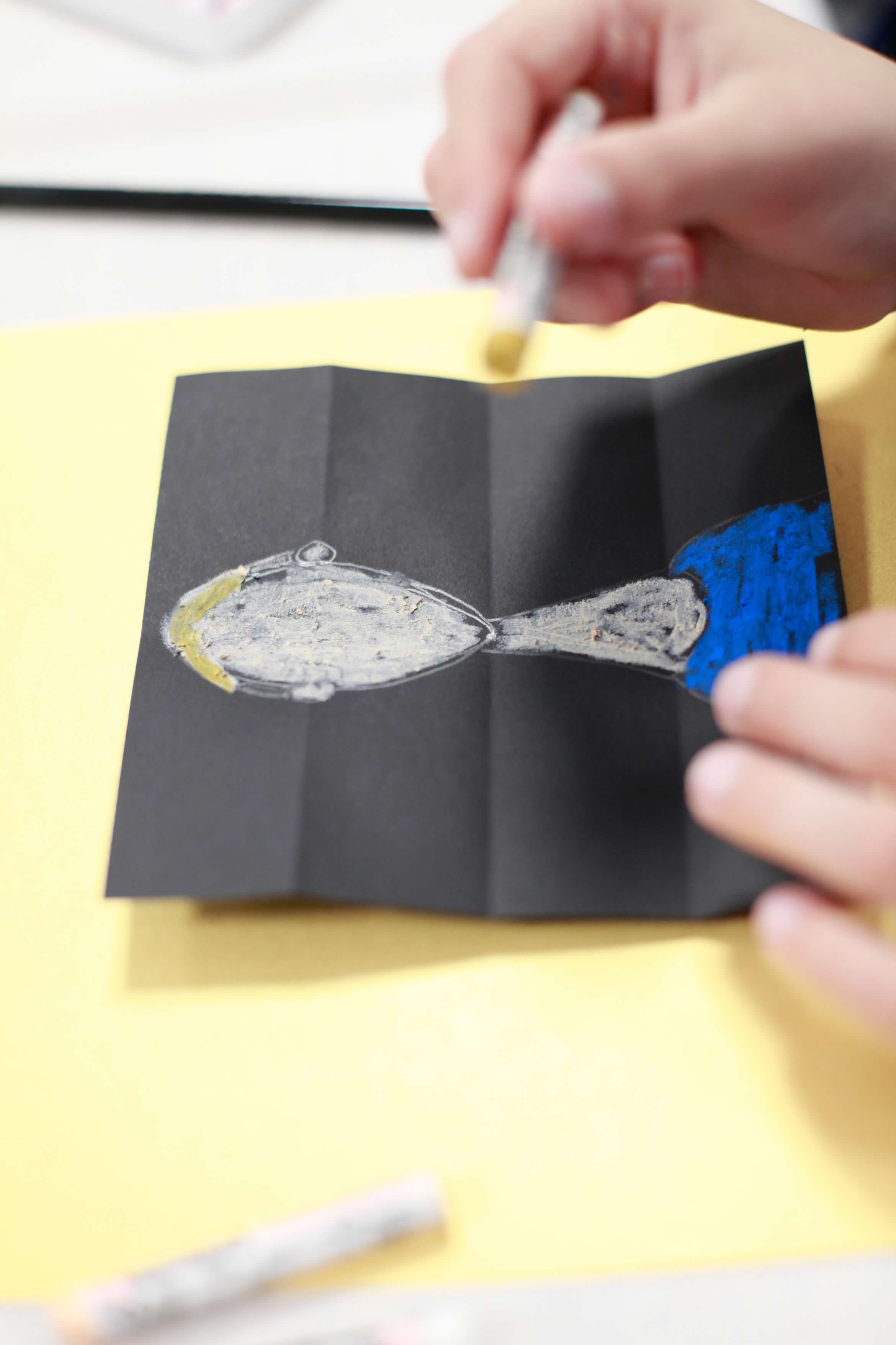 - Black tempera paint + cup or plate to hold the paint
