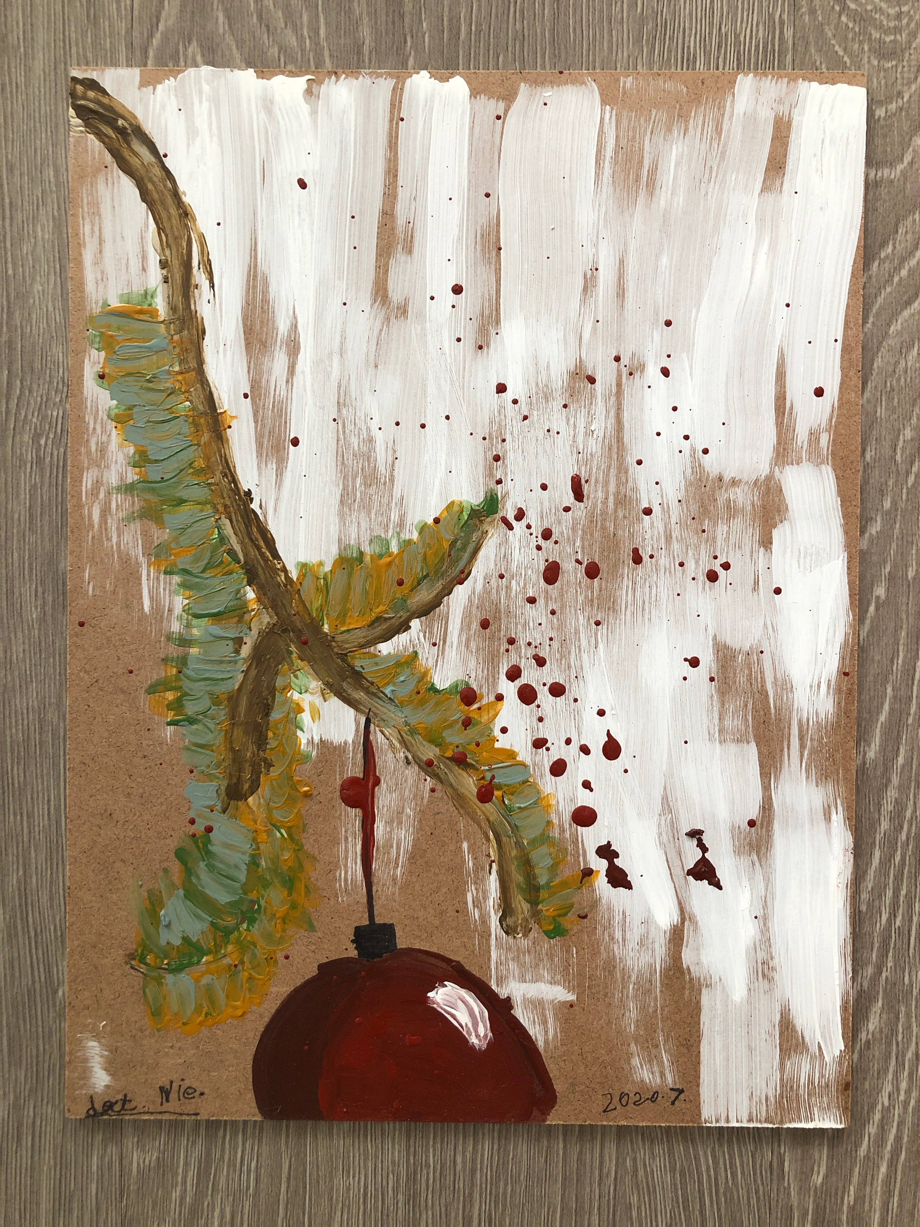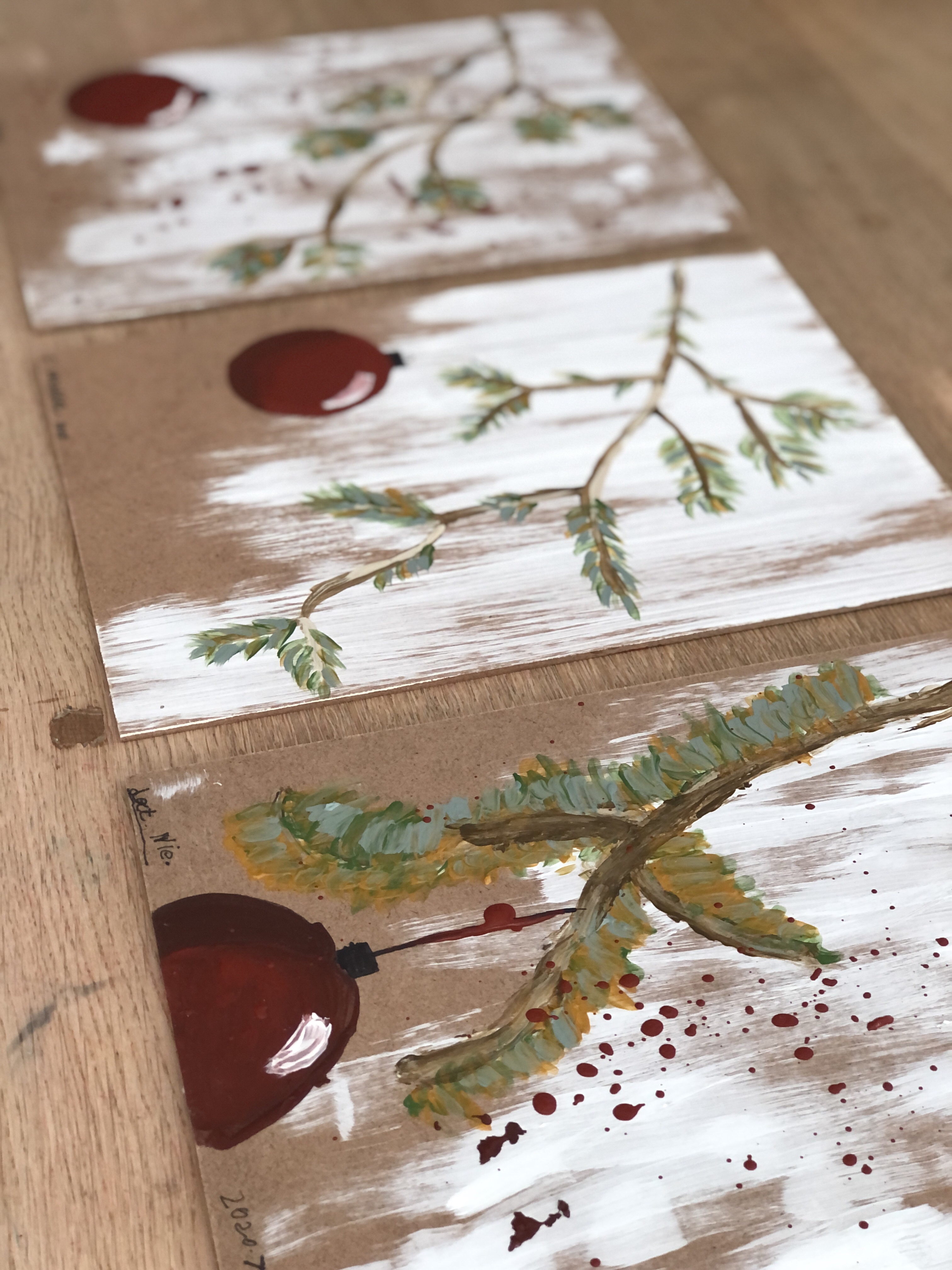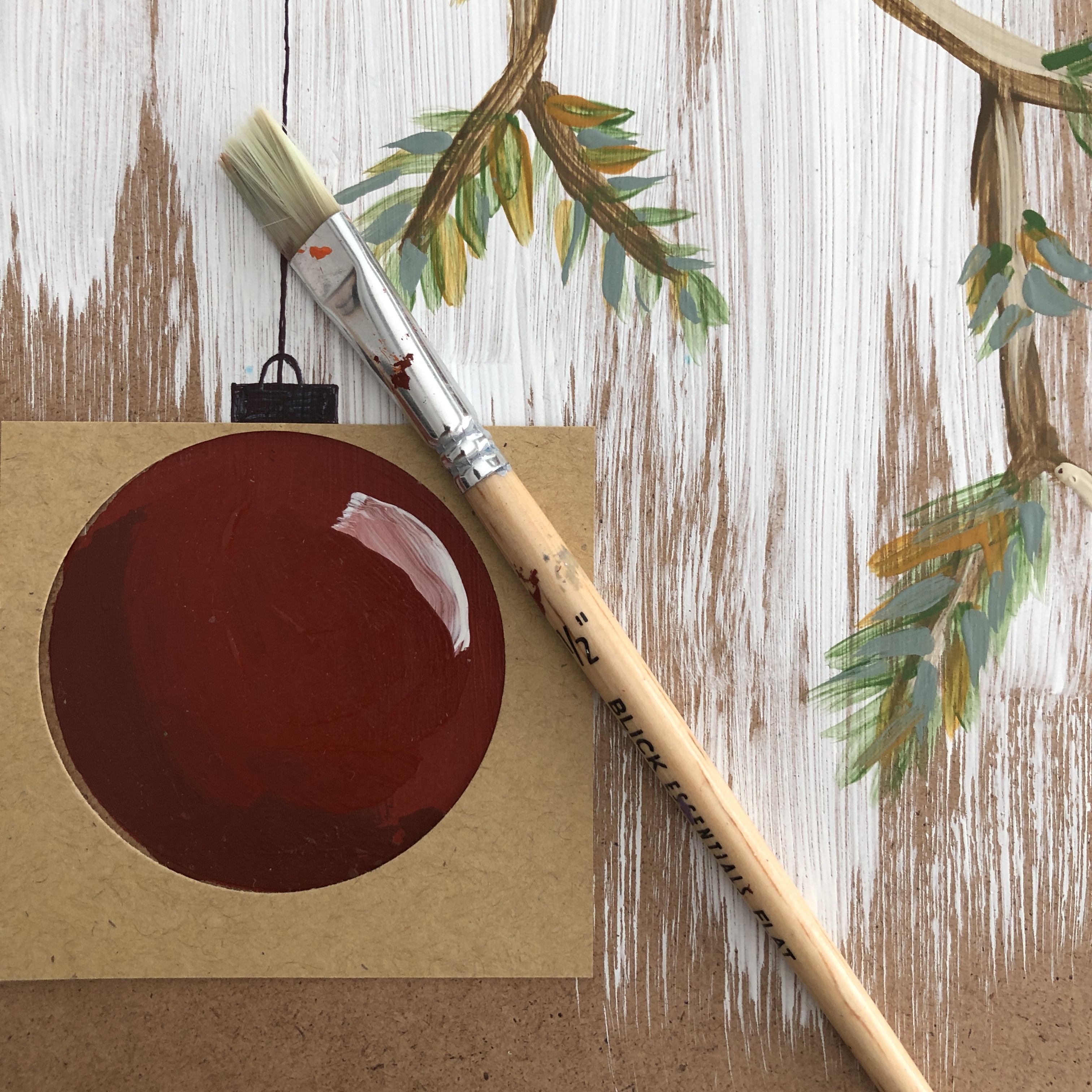 - acrylic paint: white, brown, off white, olive green, sage green, mustard, cranberry, charcoal
