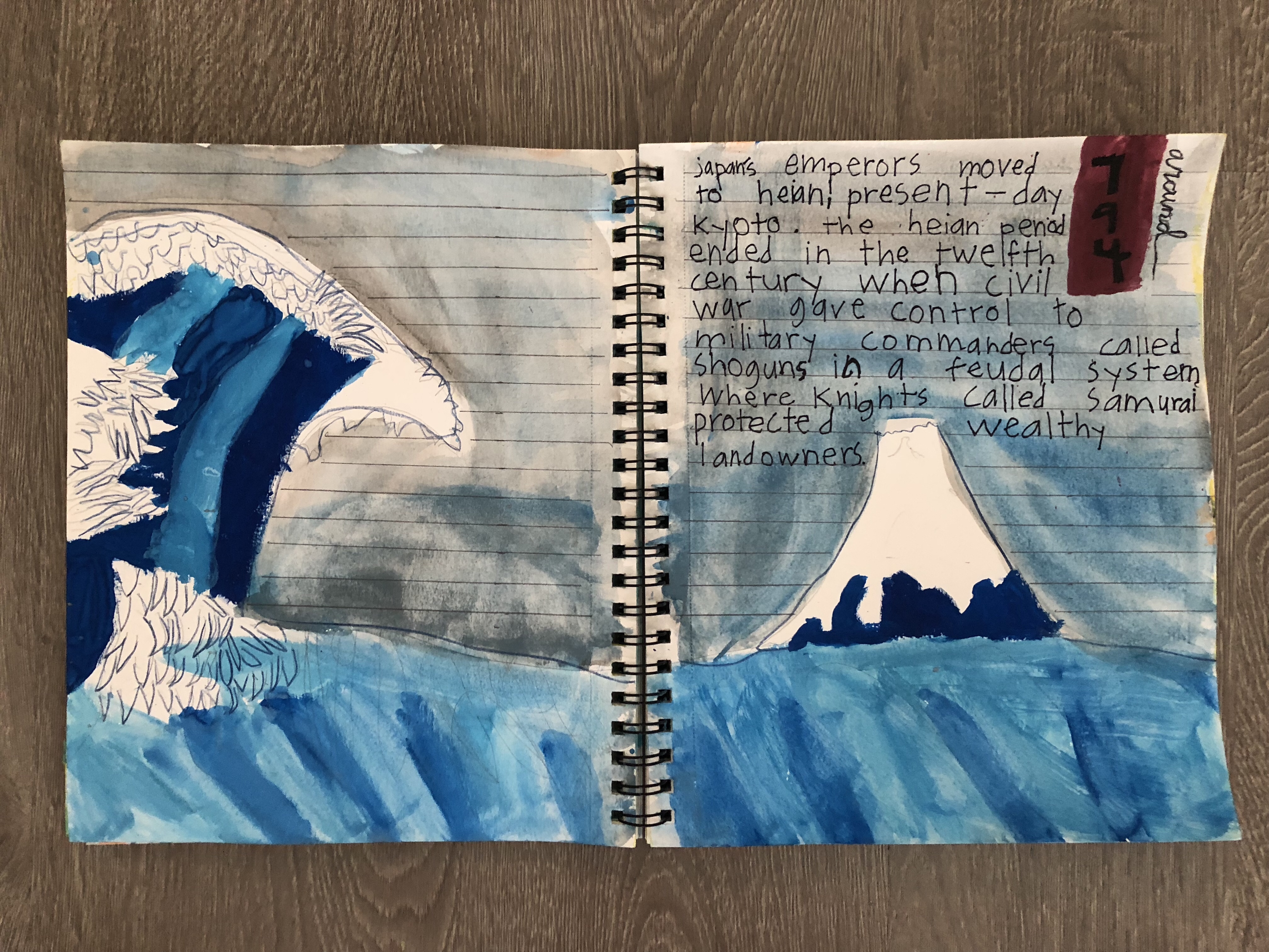 cc cycle 1.week 10.history.japan’s heian BE INSPIRED BY JAPANESE WOOD BLOCK PRINTS watercolor watercolor pencils white out correction pen black felt tip pen Related