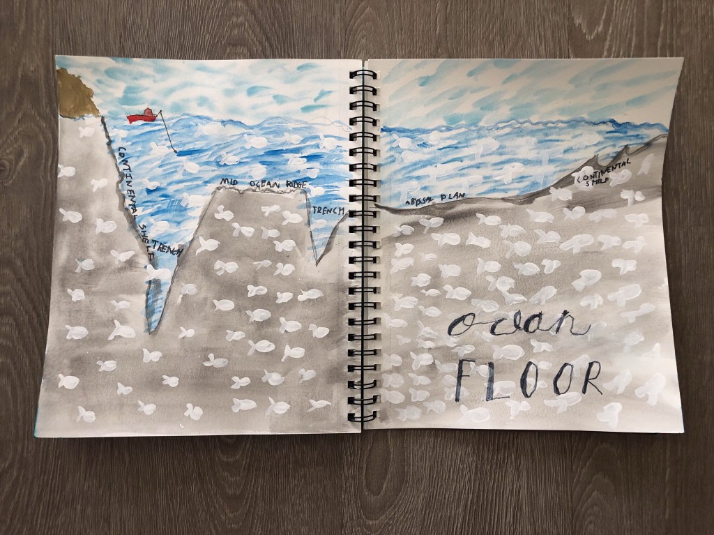 CC cycle 1.week 18.science.ocean floor materials: watercolor paper or watercolor sketchbook watercolor paintlarge brushsmall brushwhite tempera paint gray marker watercolor pencils DEMO: WATERCOLOR SKY & OCEAN DEMO: PAINTING FISH Related