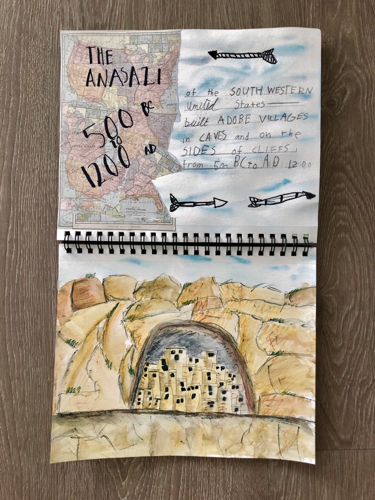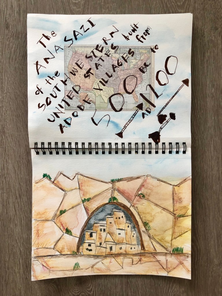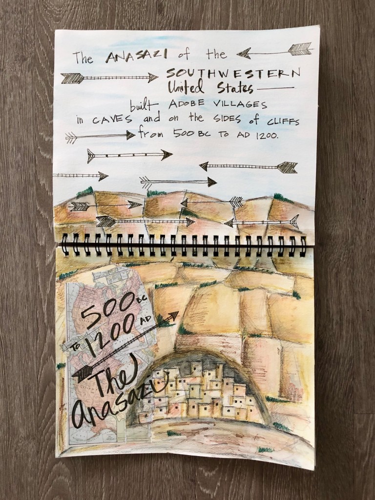 I find the Anasazi villages fascinating! I was so excited to draw this. It’s a pretty simple line drawing. We did a short tutorial to show you what we did….