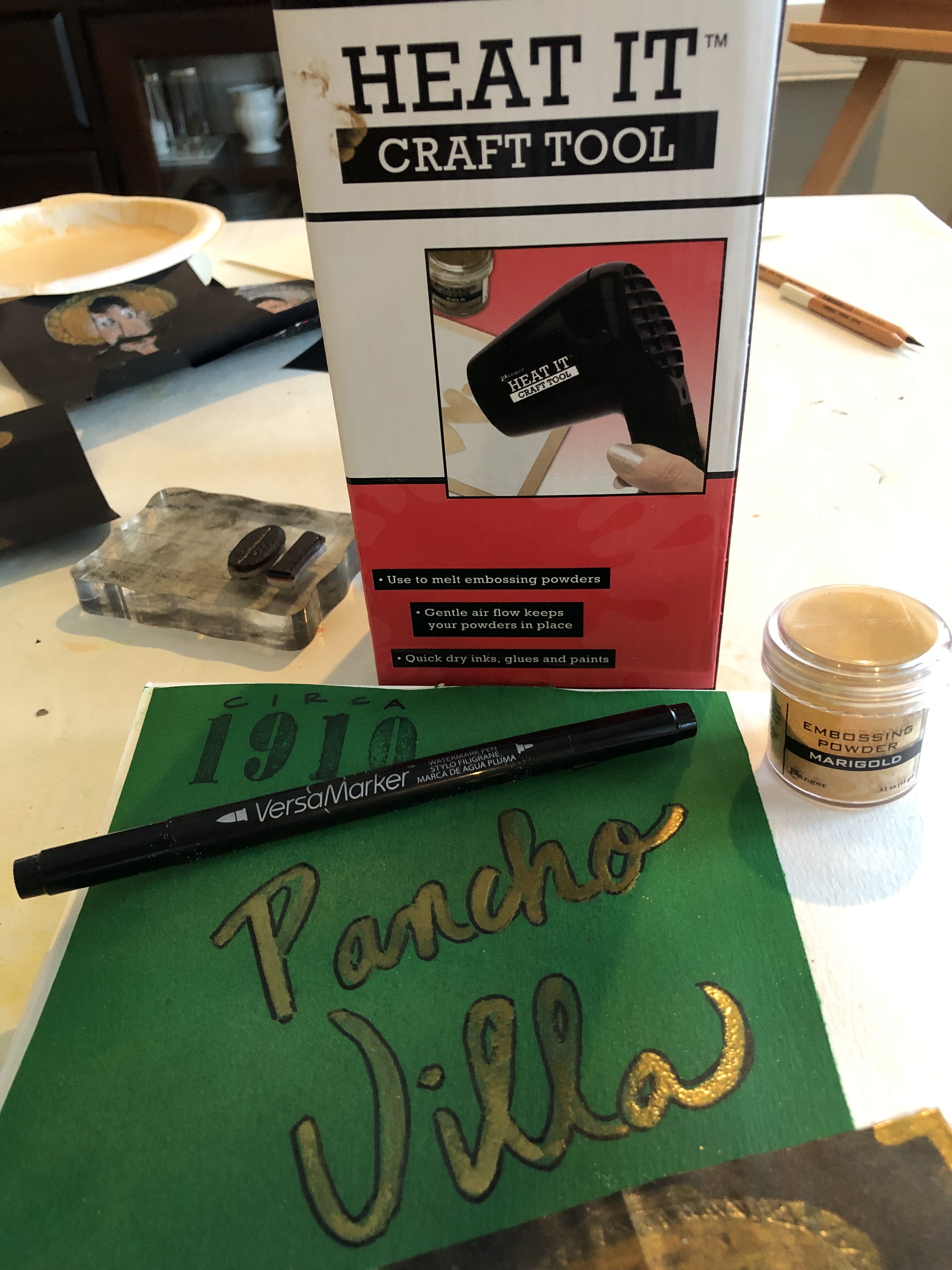 - embossing marker for the gold names …. a fun new tool to our family. see demo and art tools in the menu. note: the ink dries very fast on the watercolor paper. I was only able to do one letter at a time before it dried and the embossing powder would no longer adhere.