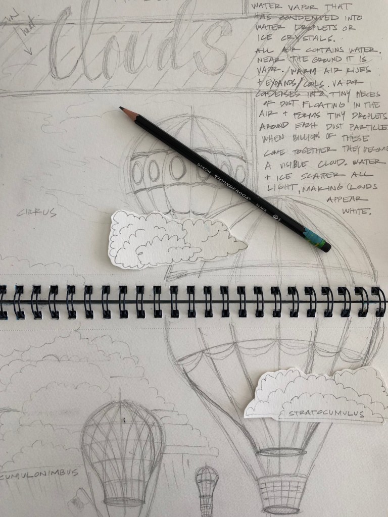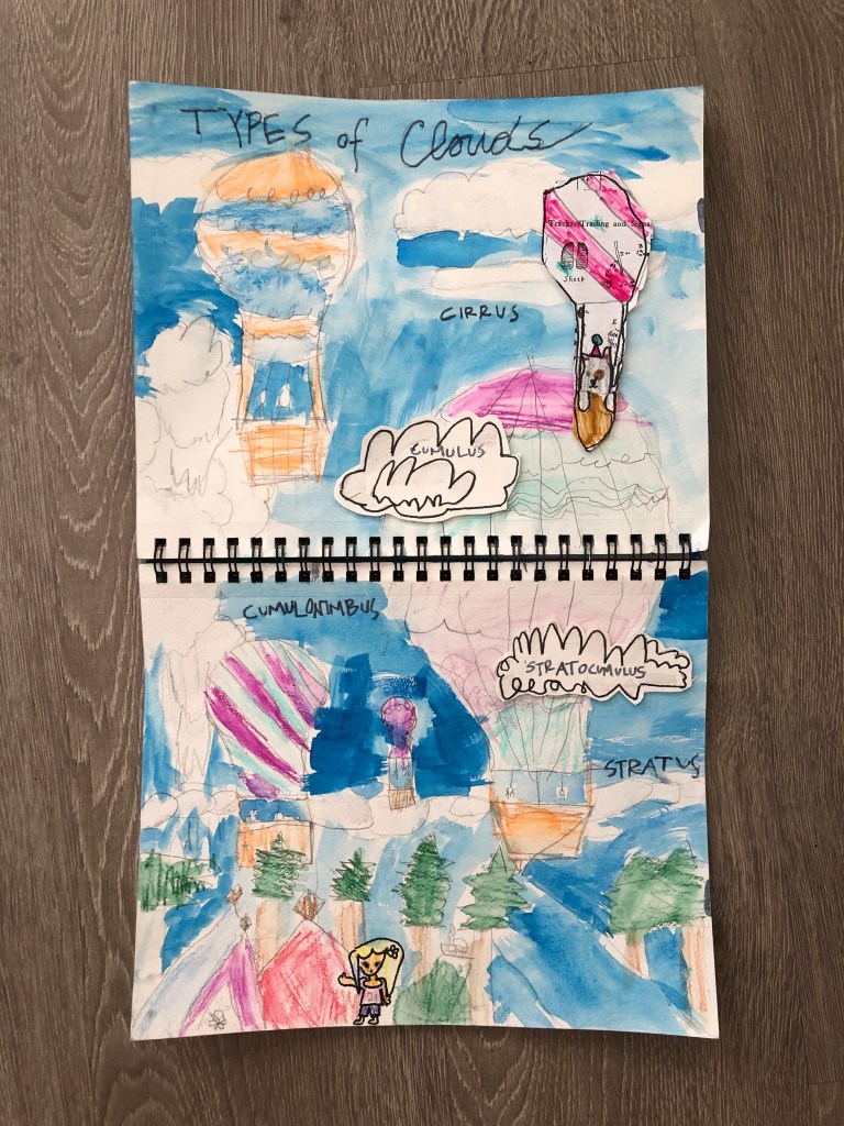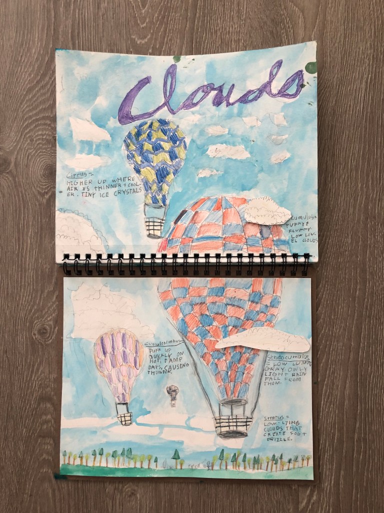 We’ve really been looking forward to drawing hot air balloons for this project! Clouds are so interesting! We really enjoyed learning more about them! This is a great project for watercolor pencils!