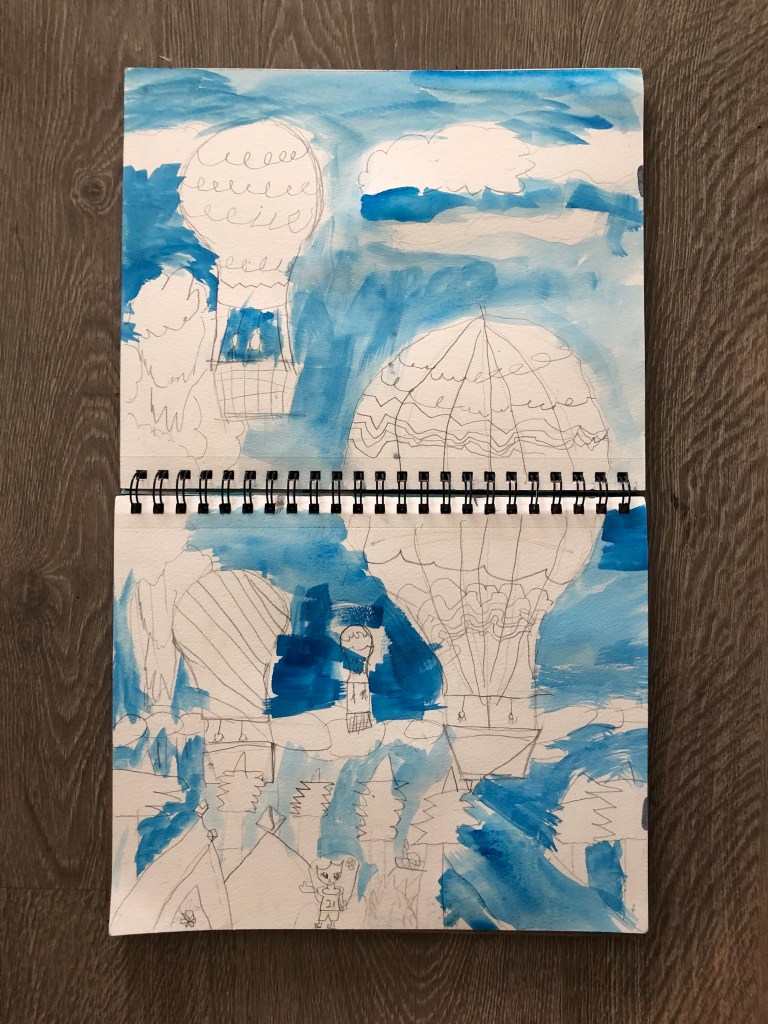 - link to “the lost sock art teacher” with step by step instructions on how to draw a hot air balloon