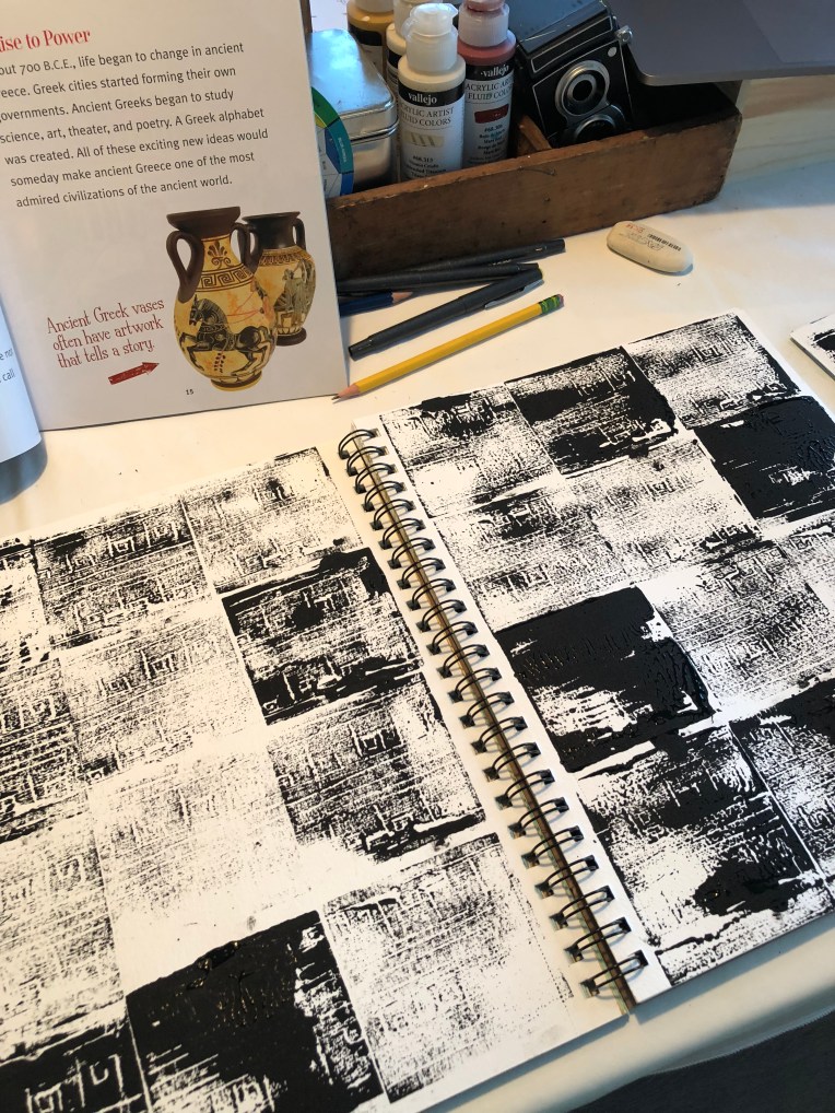 MAKE A WOOD BLOCK PRINT FOR THE BACKGROUND