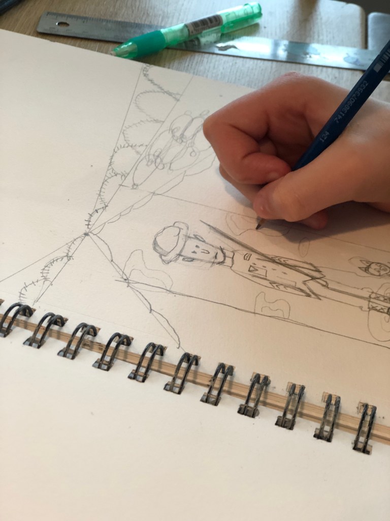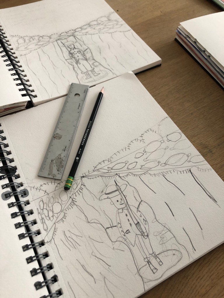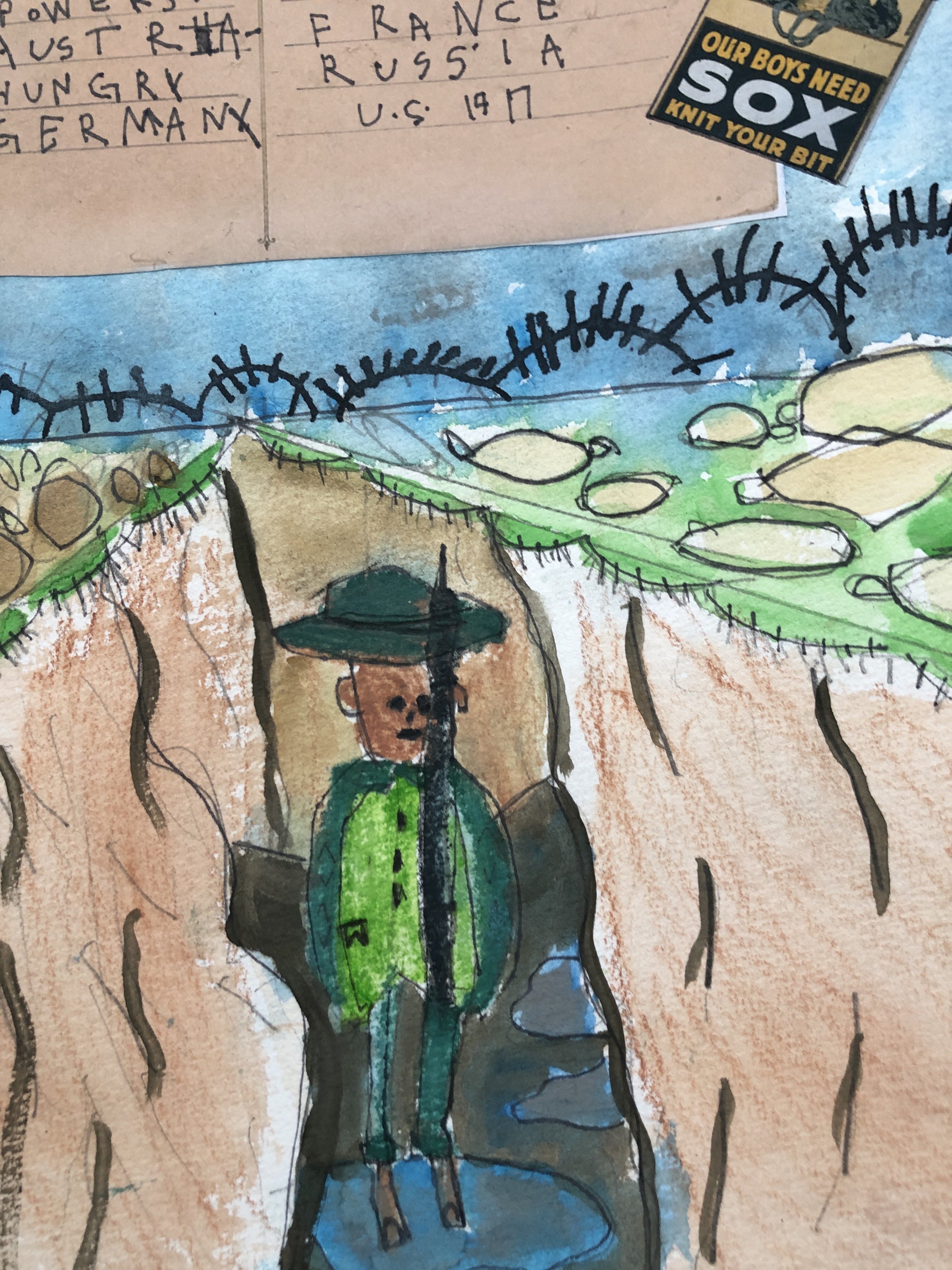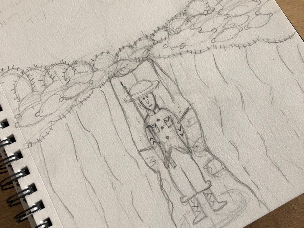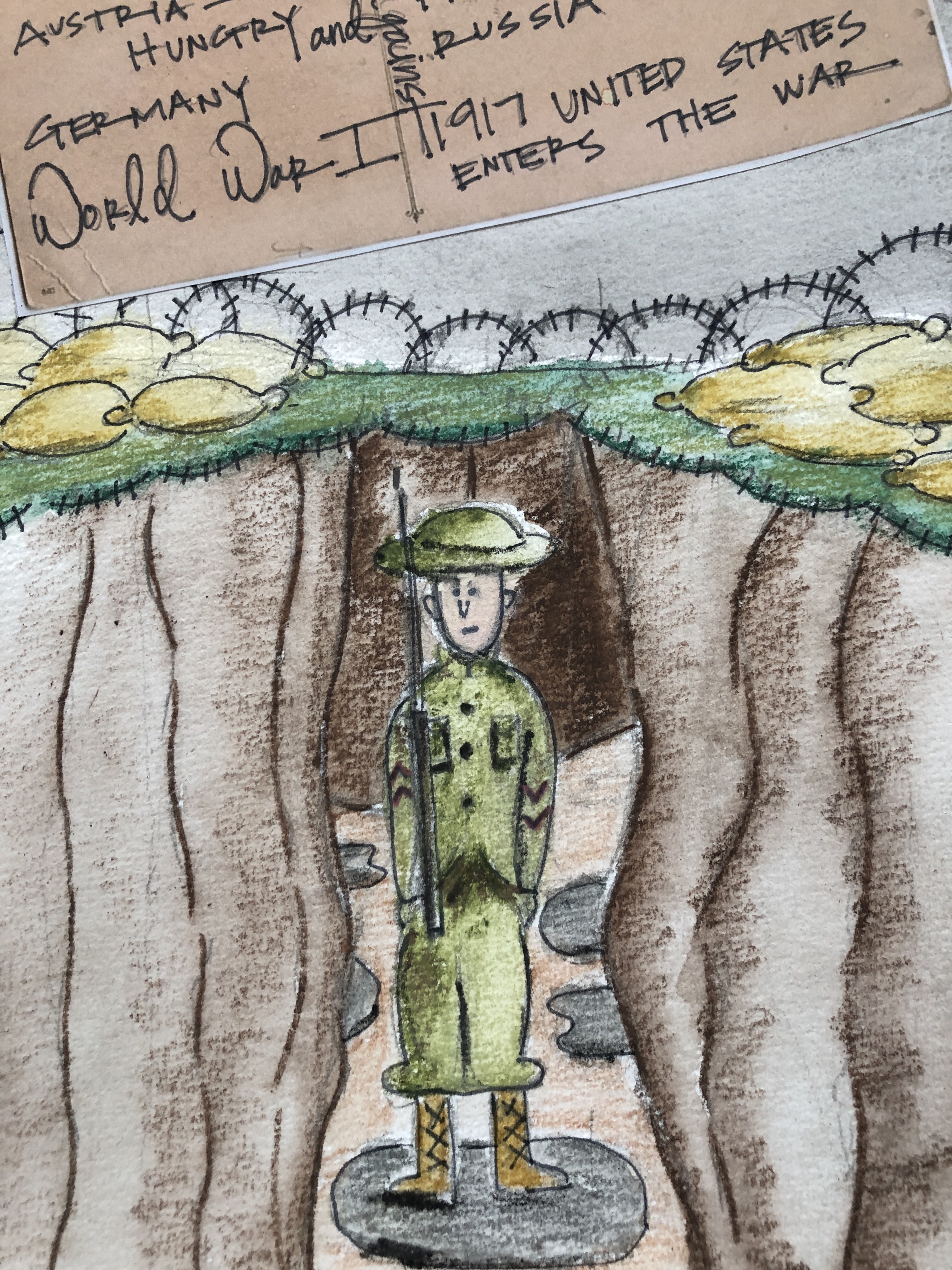 - follow tutorial for instruction on how to draw the soldier and trench using one point perspective.