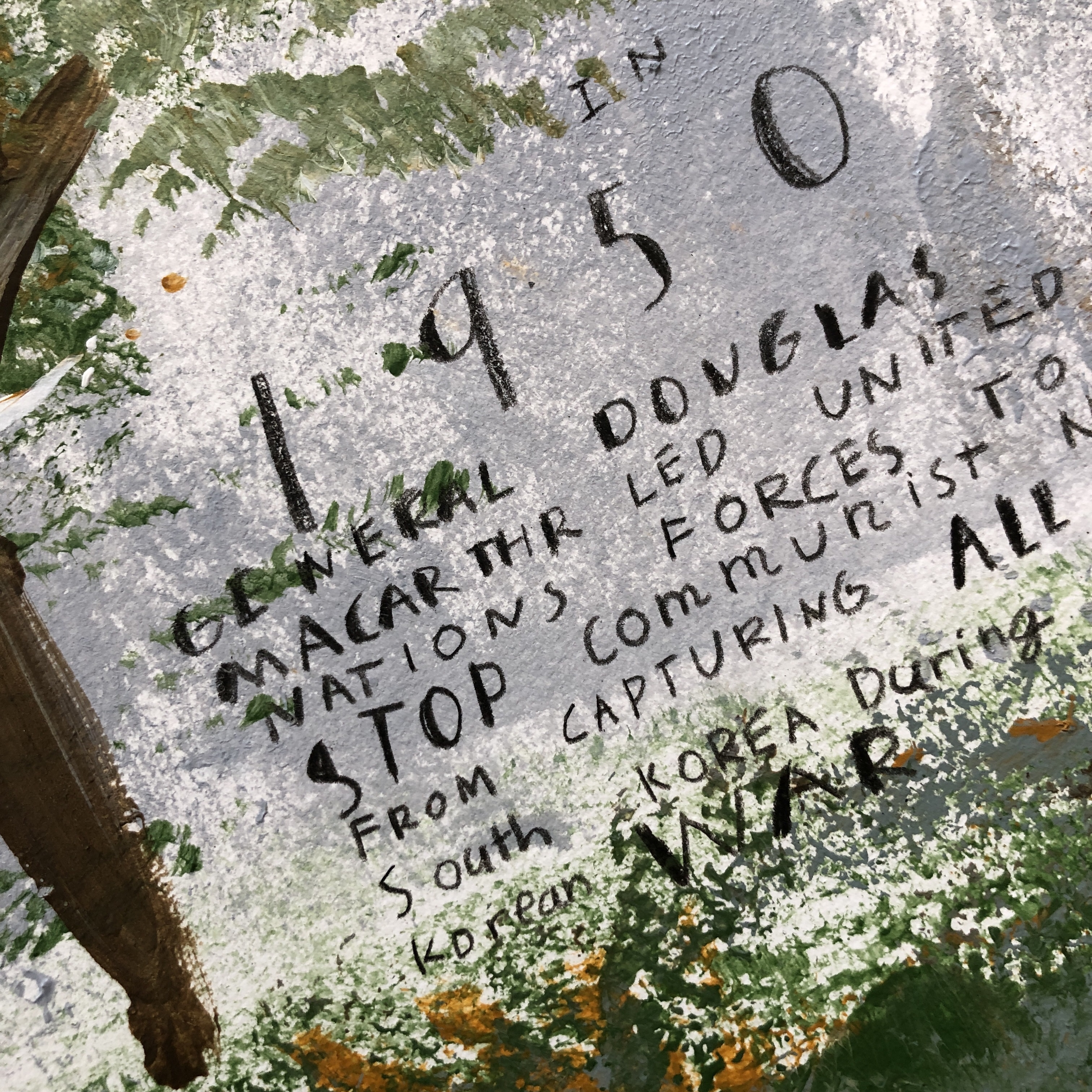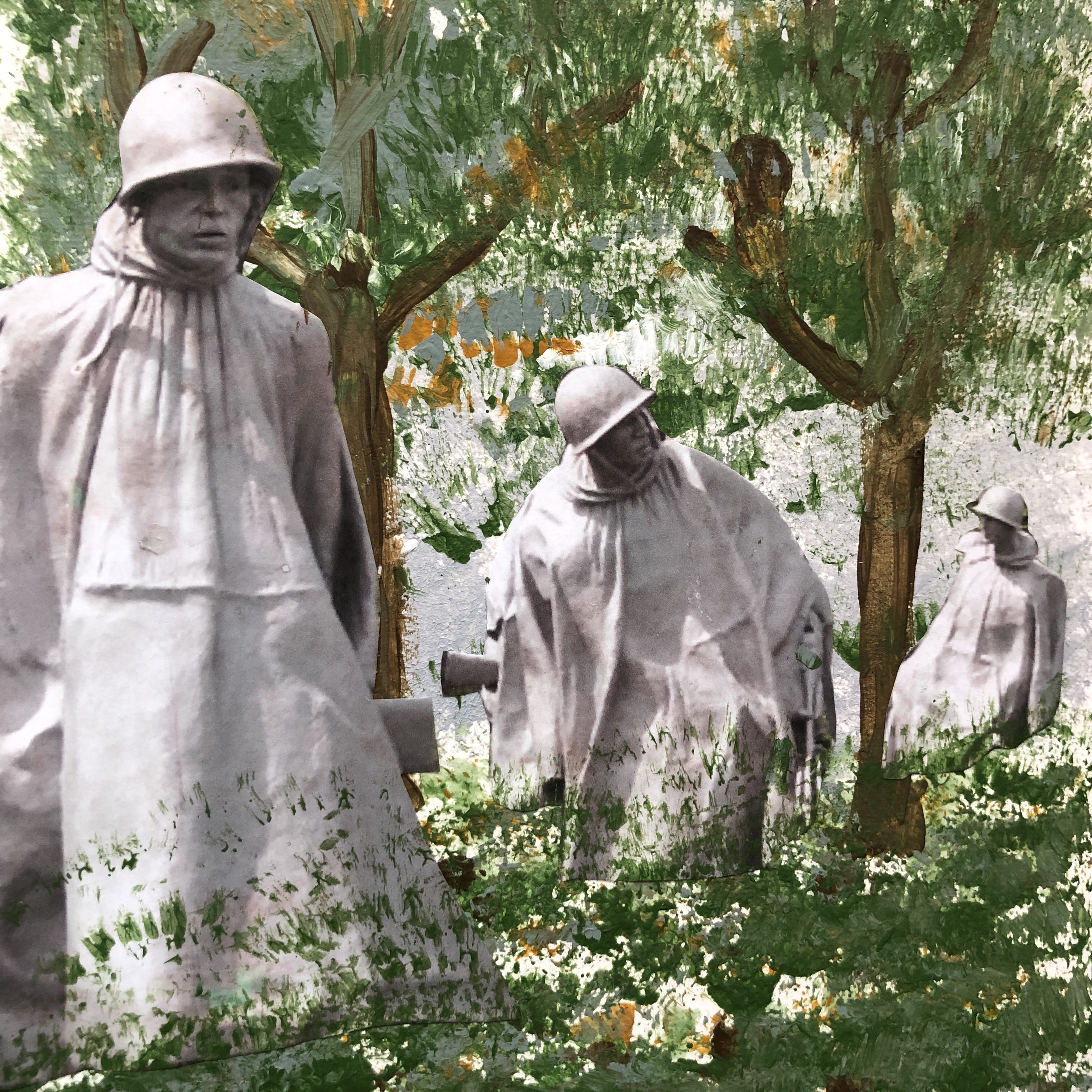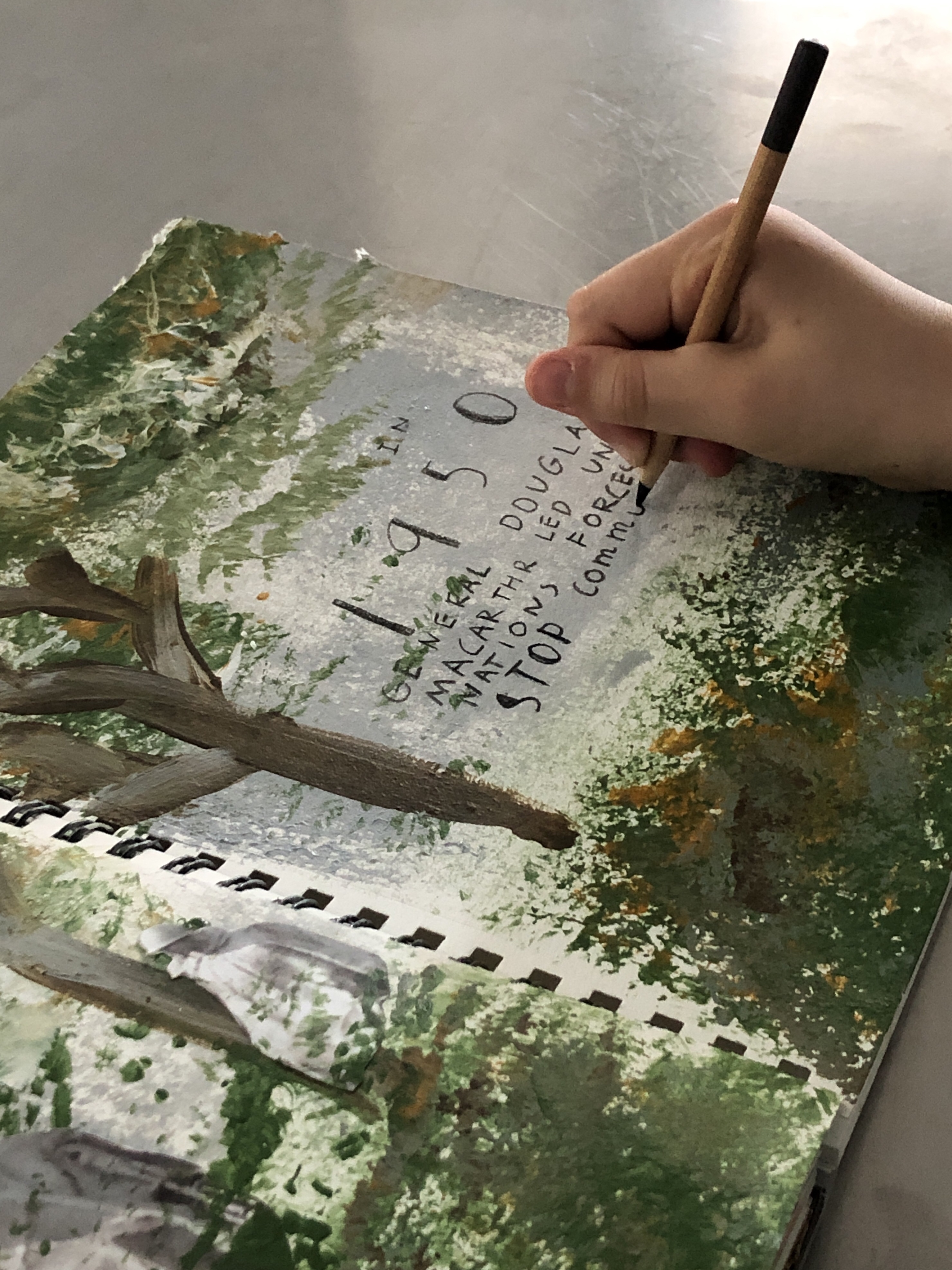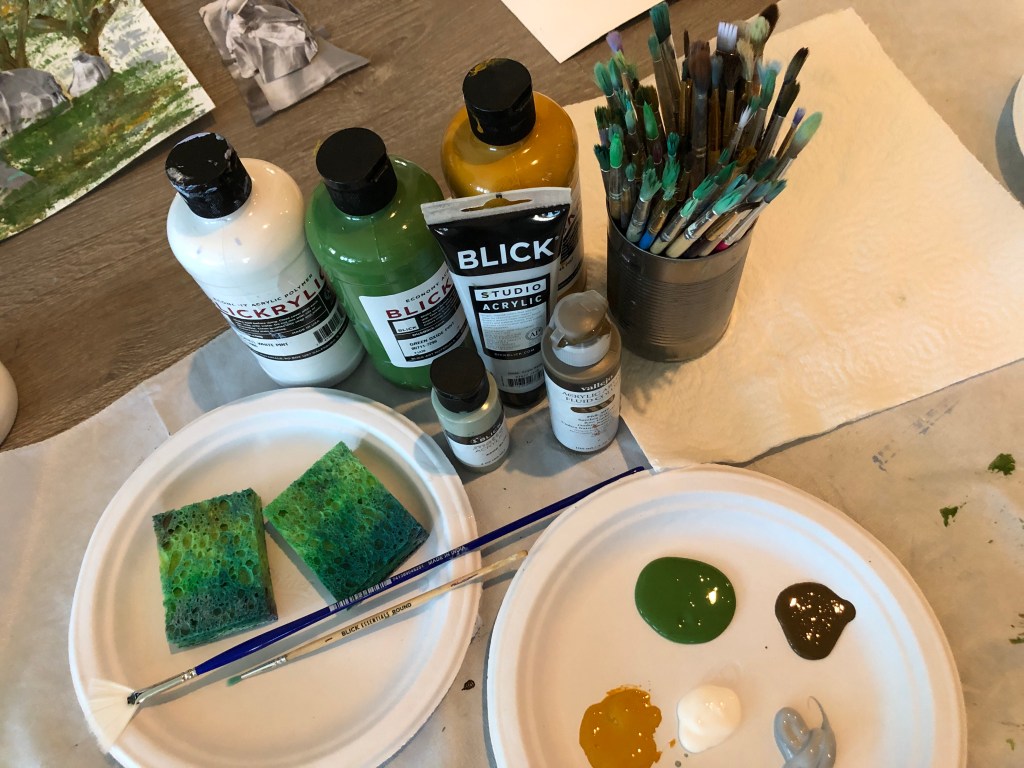 - painting an impressionistic landscape inspired by the memorial w/ a sponge + fan brush