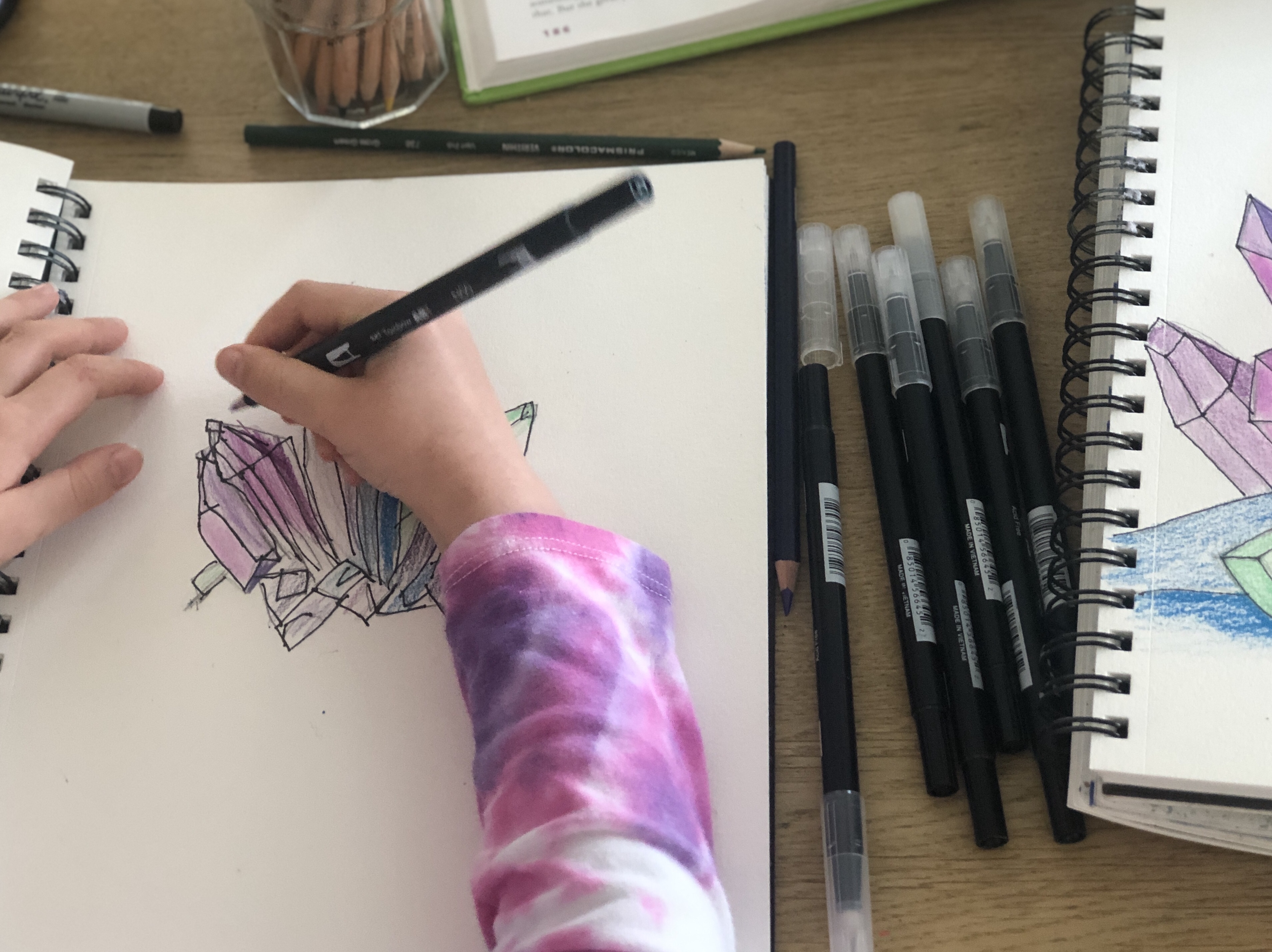 - value study (the lightness or darkness of a color, which defines form…. in the crystal value study your student will see how their pencil drawing comes to life once value in color is added to the three dimensional shapes)