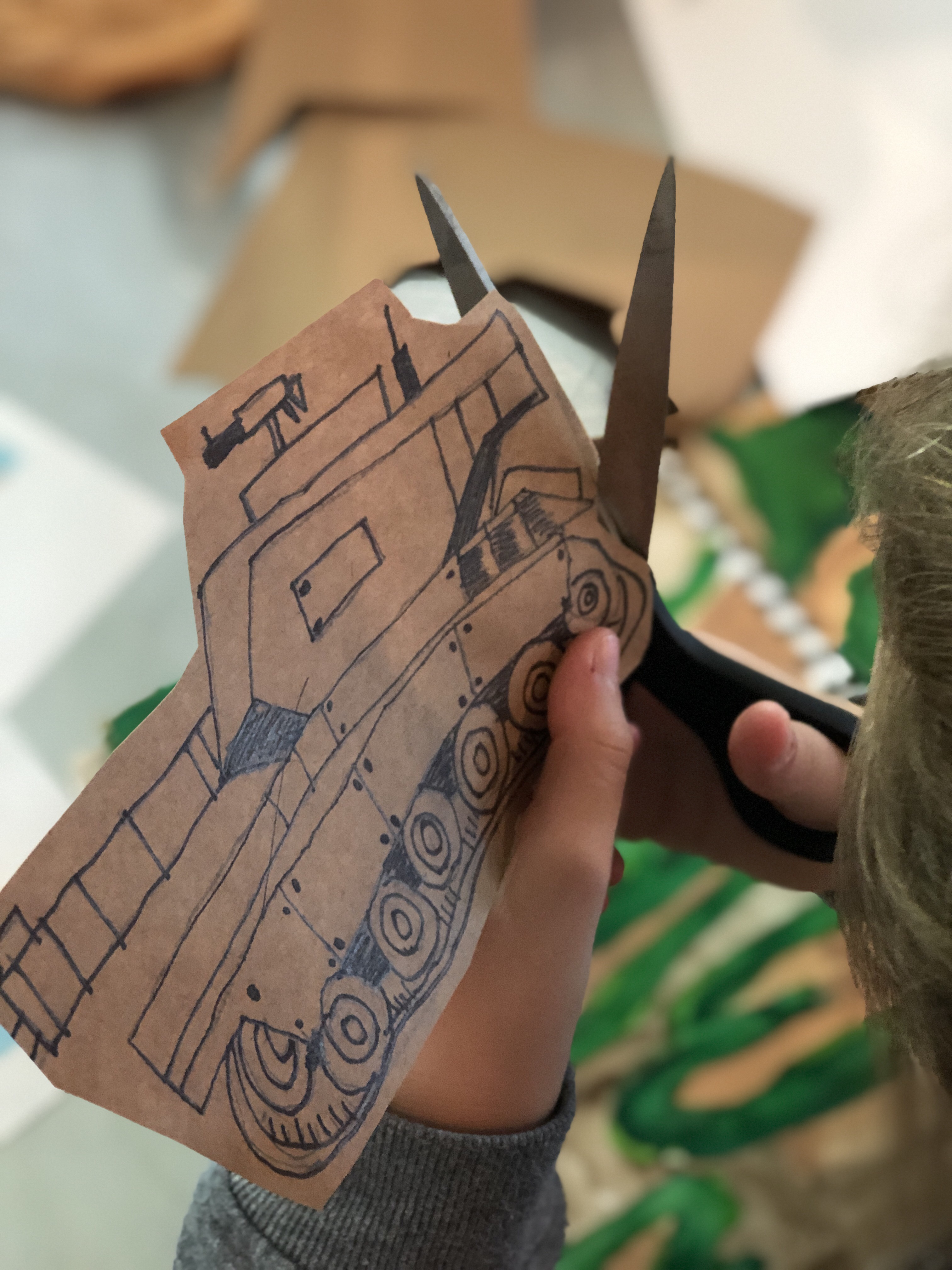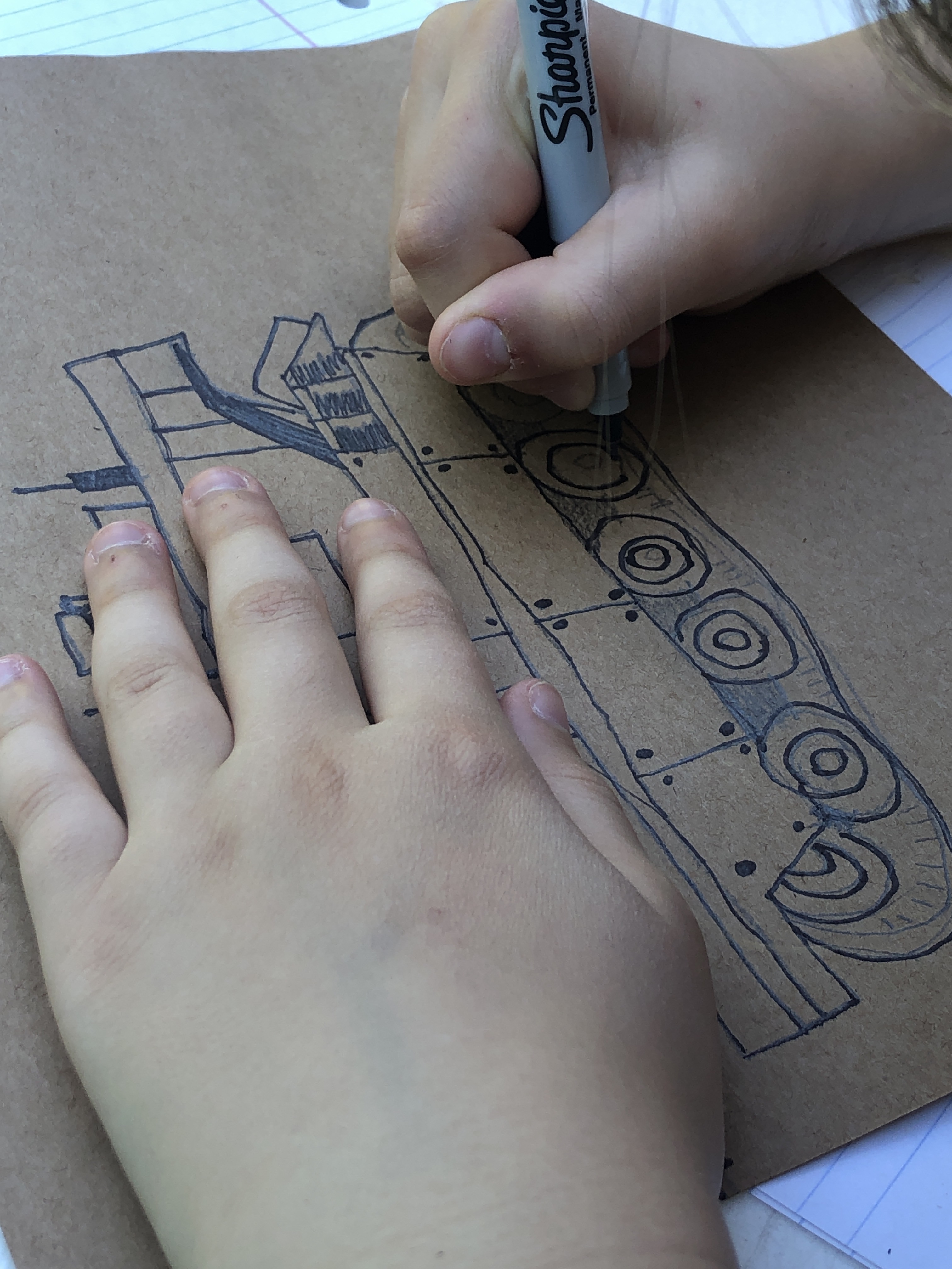 - draw on brown paper with thin black sharpie