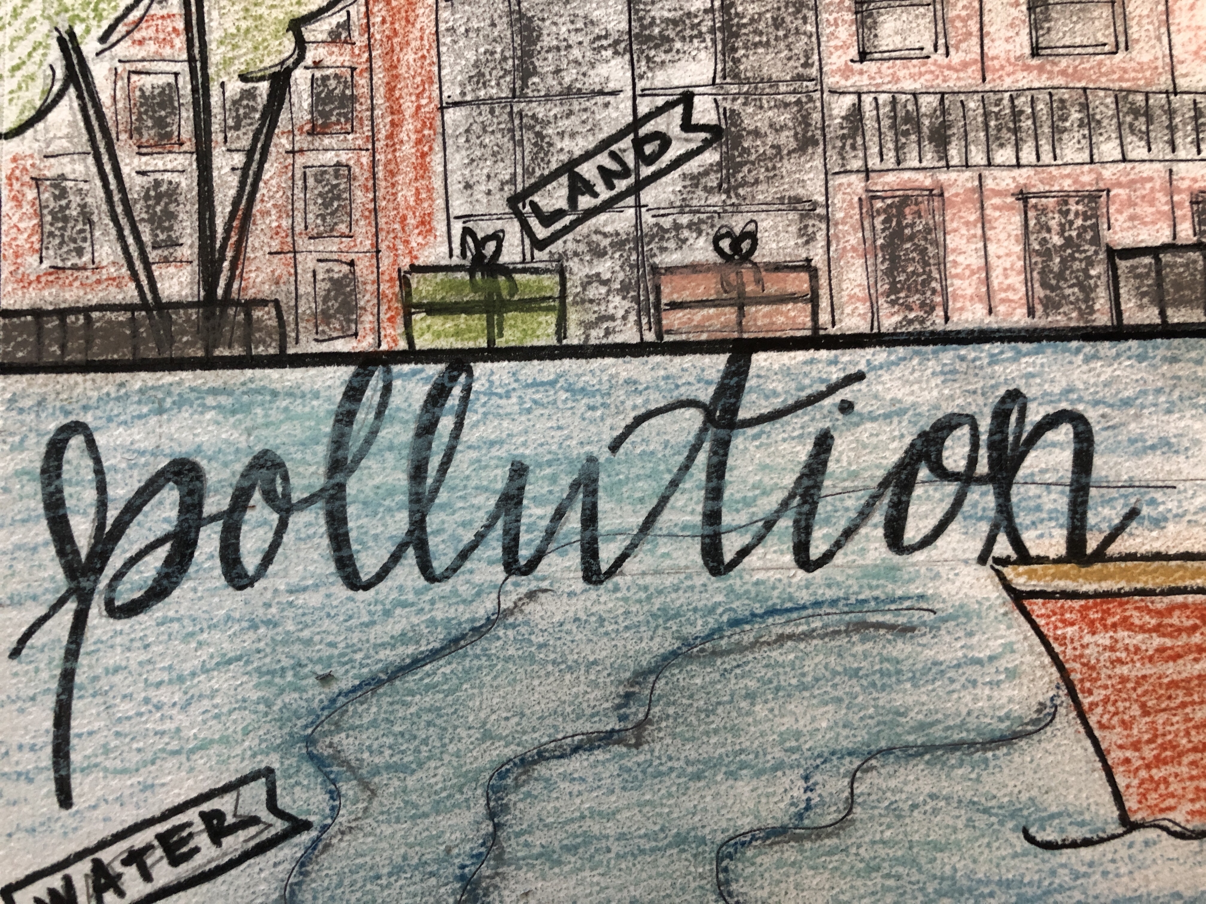 - note: after i drew my pollution page i made this label change. you may notice the labels are written directly on my page. if you write your labels directly on your page you will need to do it before using chalk. ink doesn’t work well over chalk