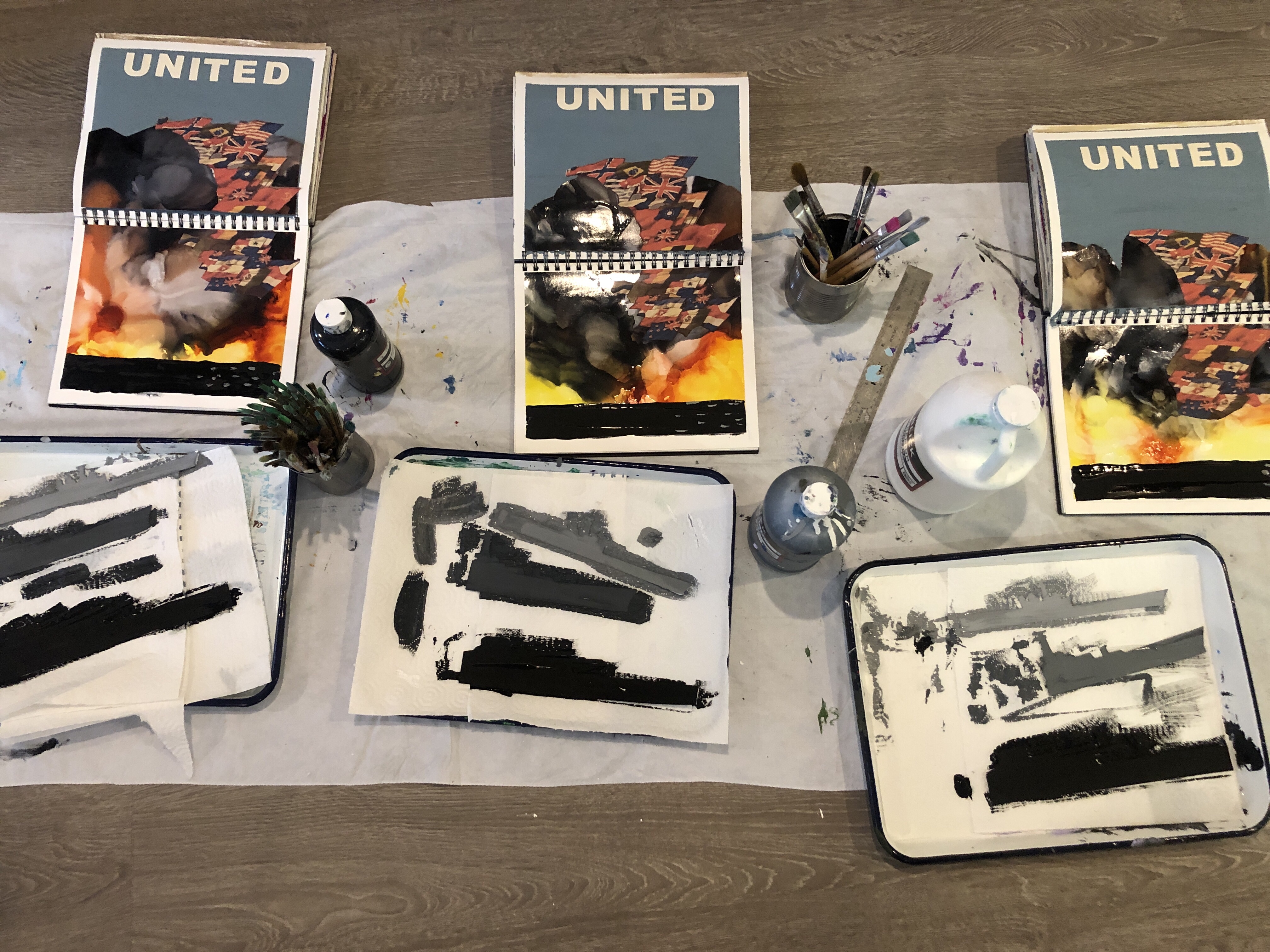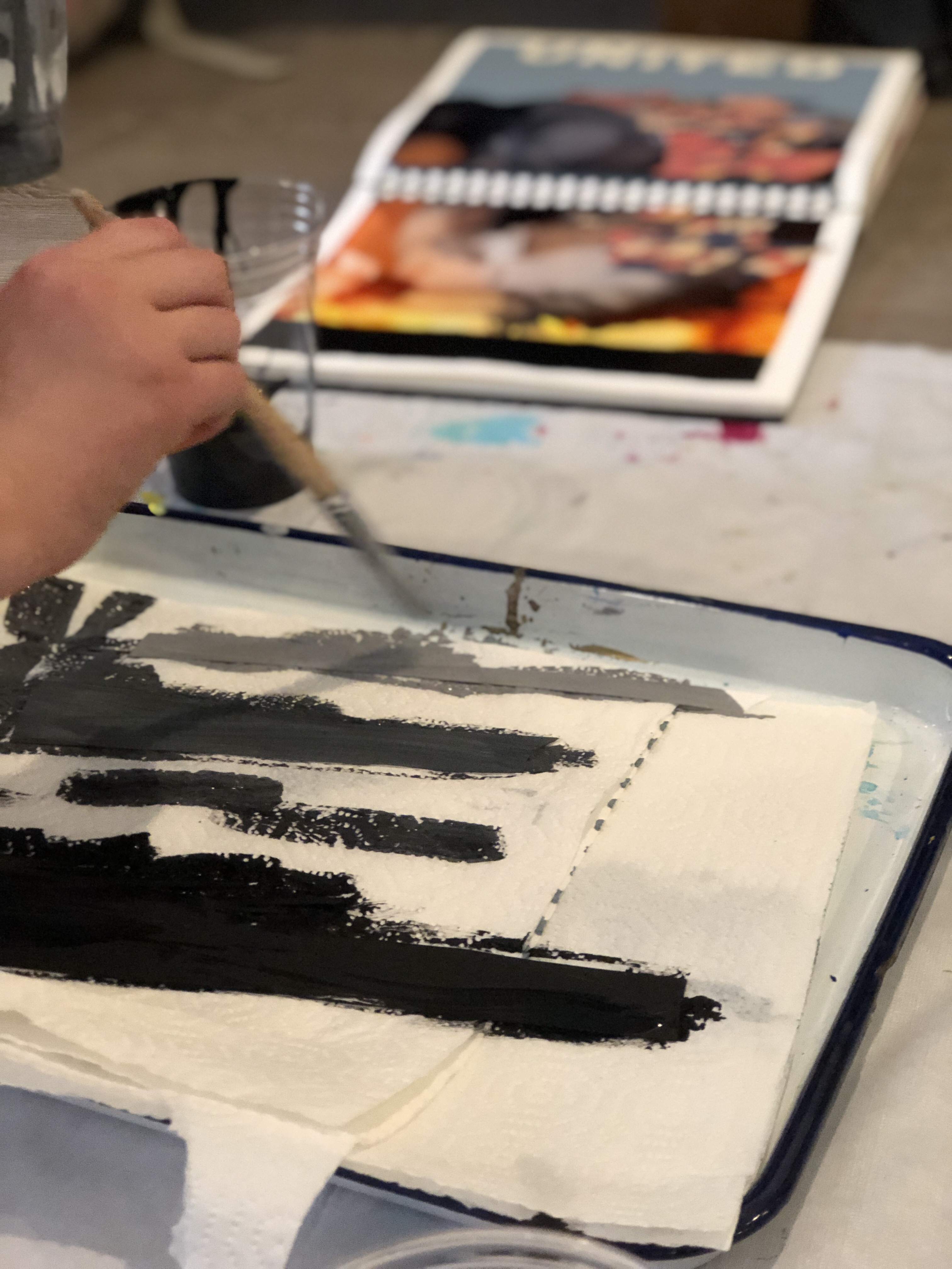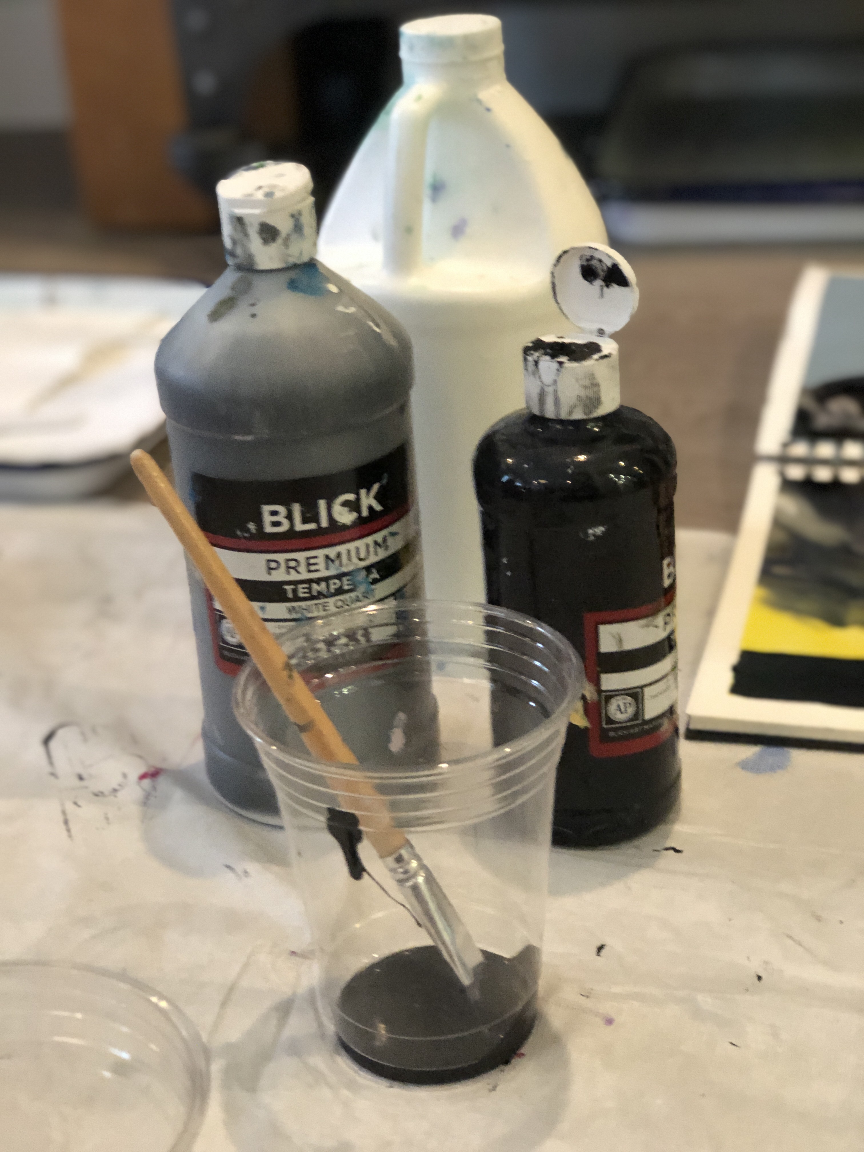 - black, charcoal, gray tempera paint (mix from black and white)