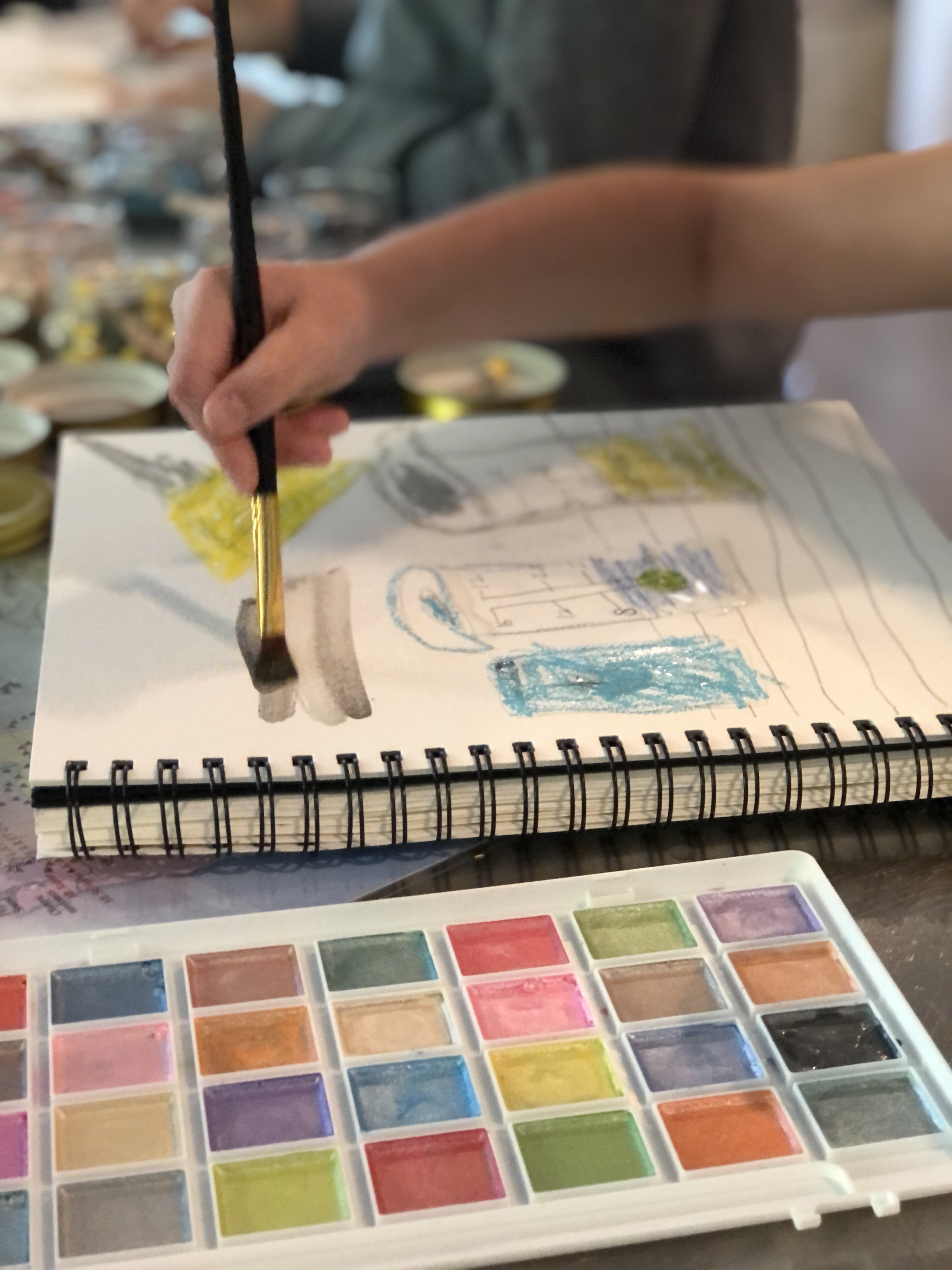 - see video for tips on applying oil pastels + watercolor paint resist