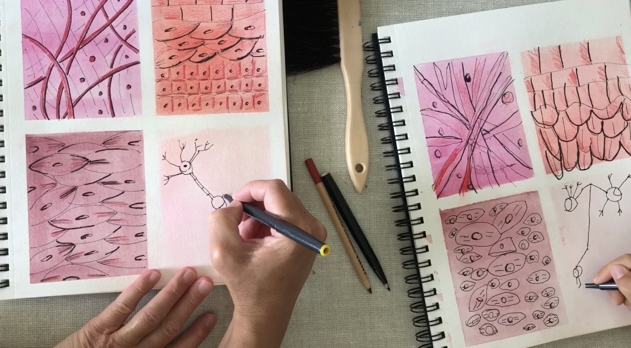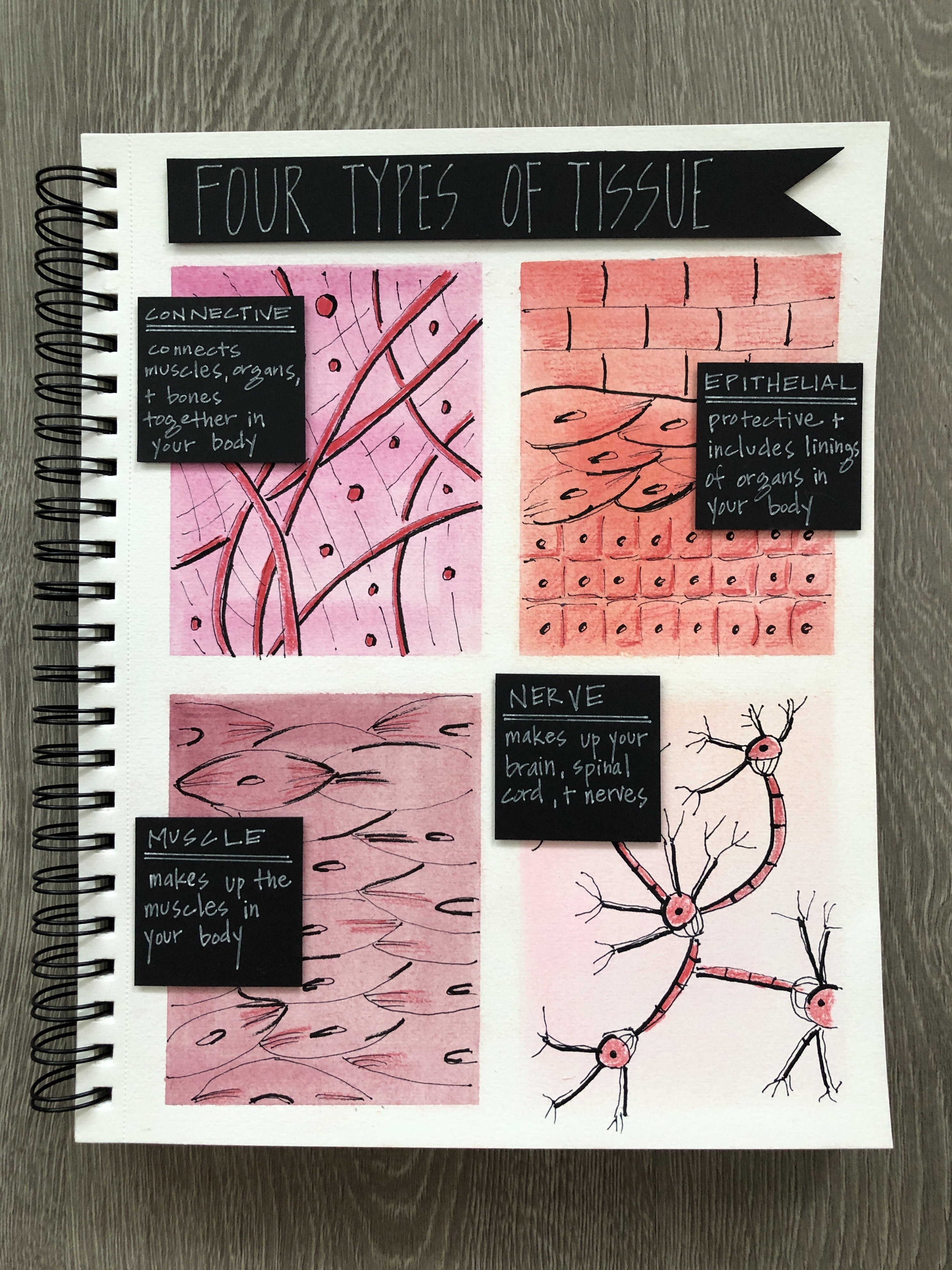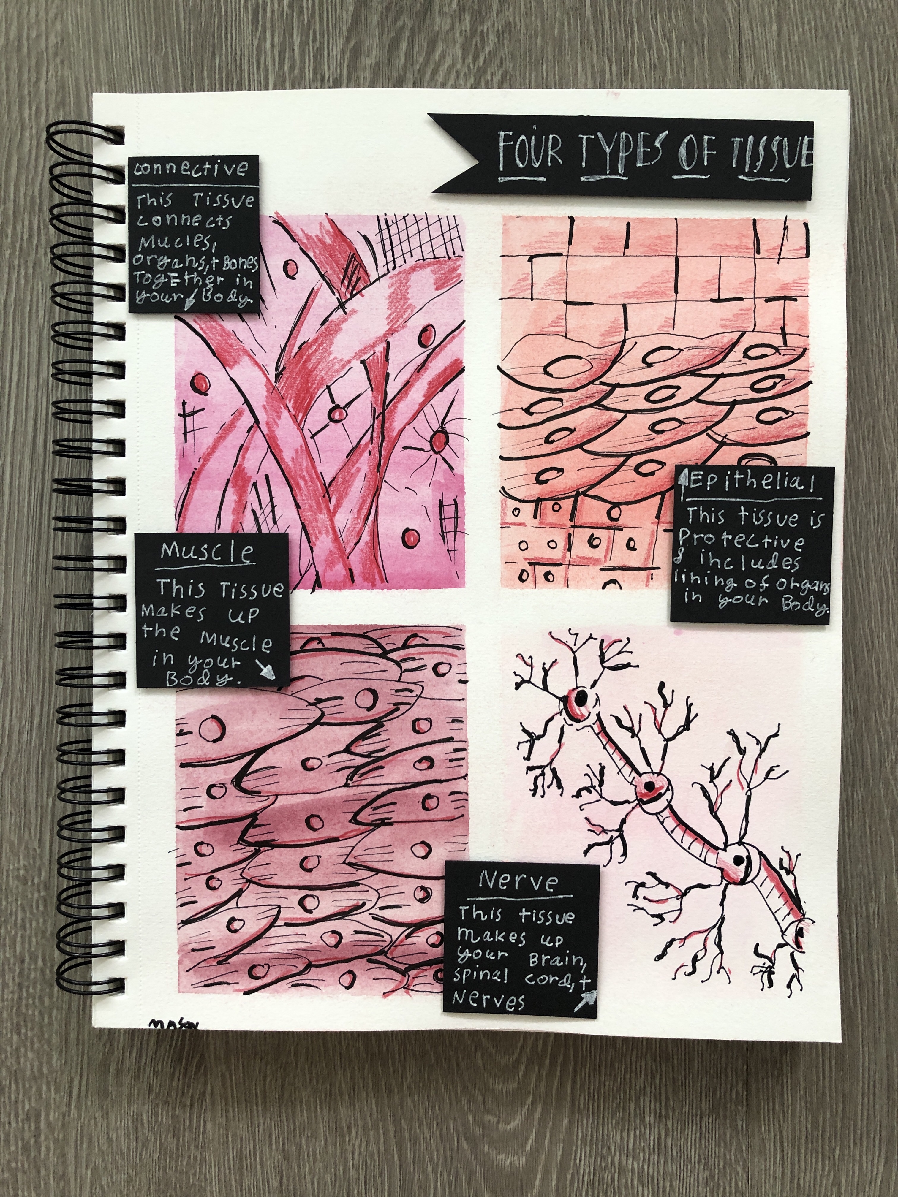 - layering pen and color pencil on top of watercolor to create depth + shadow
