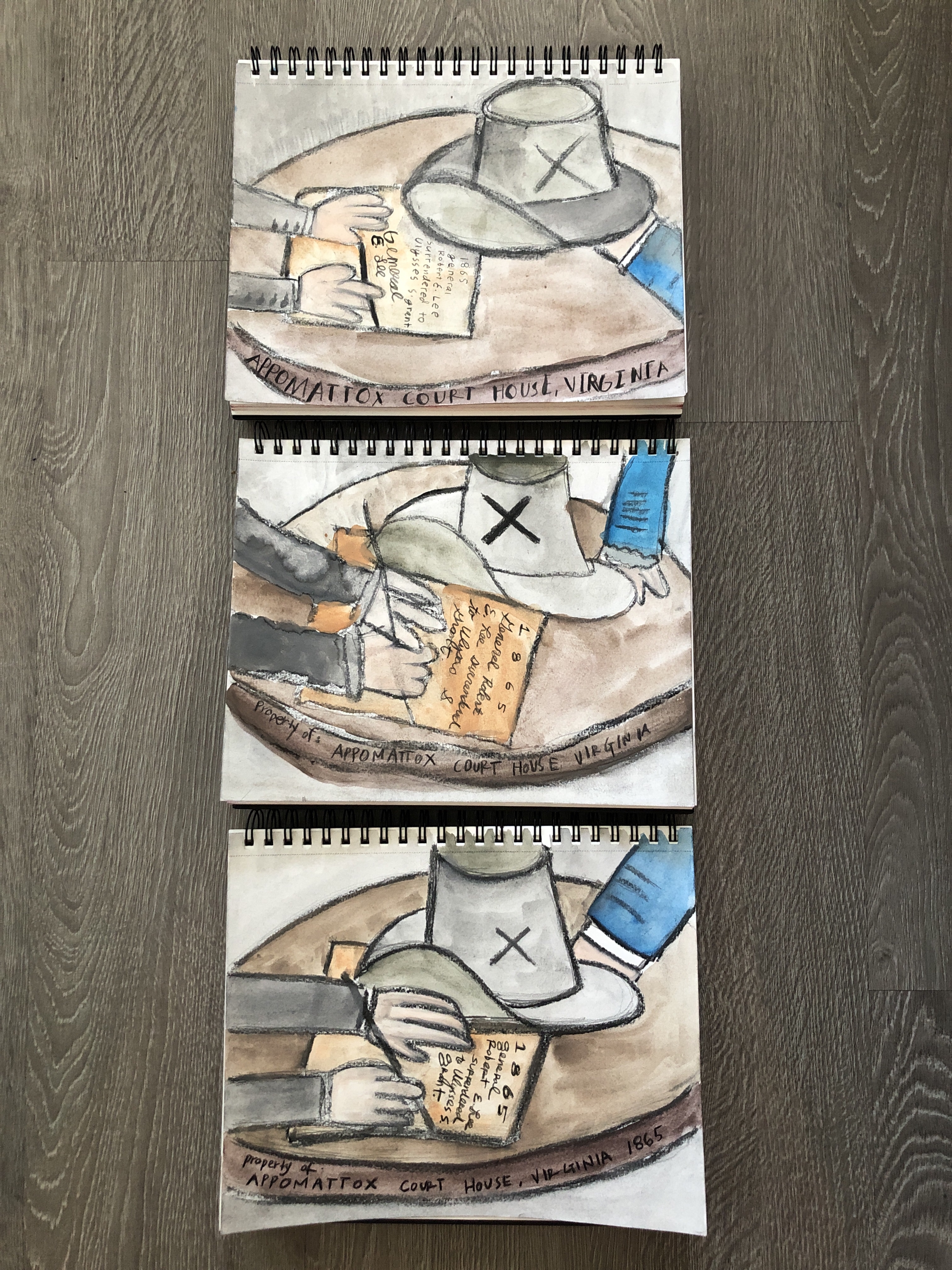 - drawing a vignette: “a picture that focuses on the subject matter and leaves out all the extra bits and pieces that don’t add to that subject”