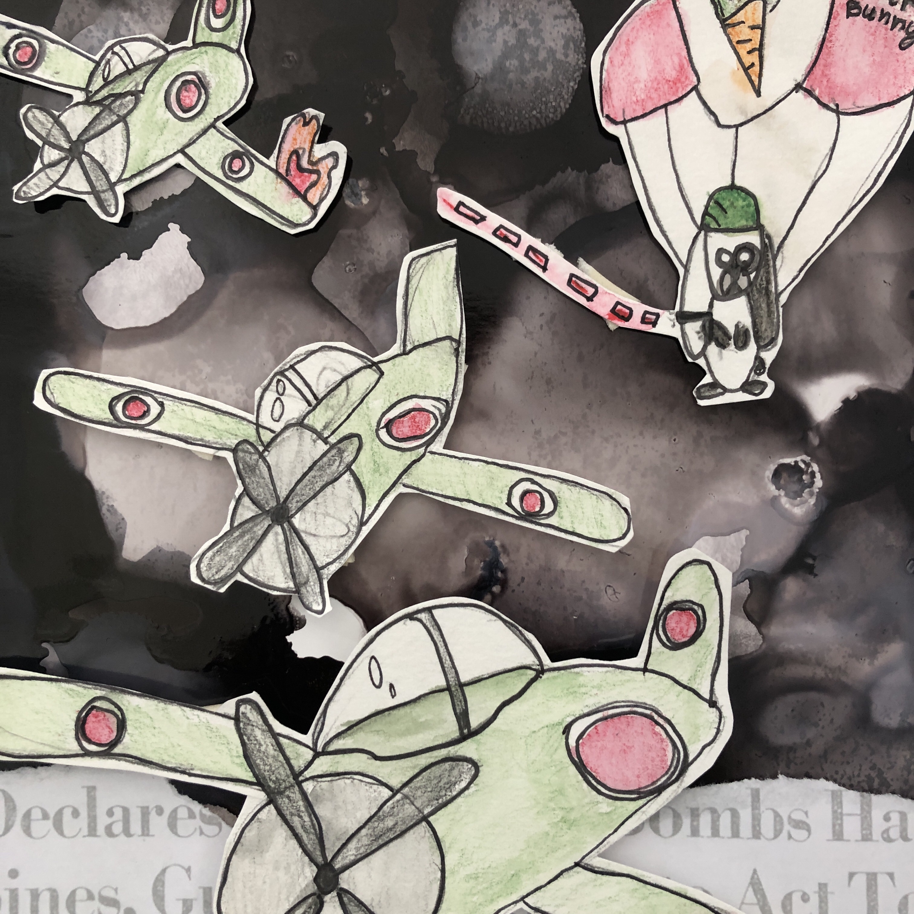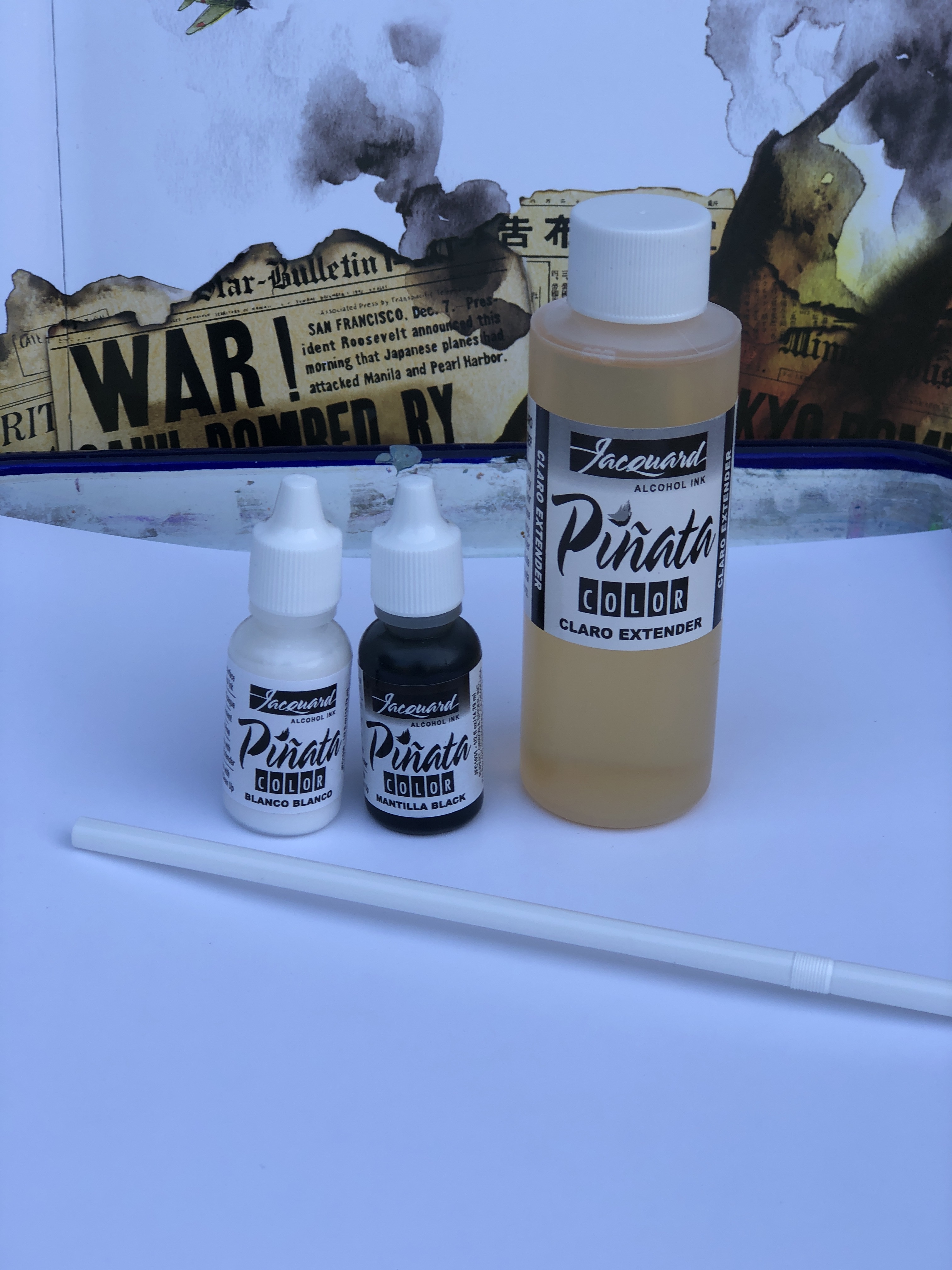 - black and white pinata inks, extender, and straw [other ideas: marbling inks, watercolor crystals]