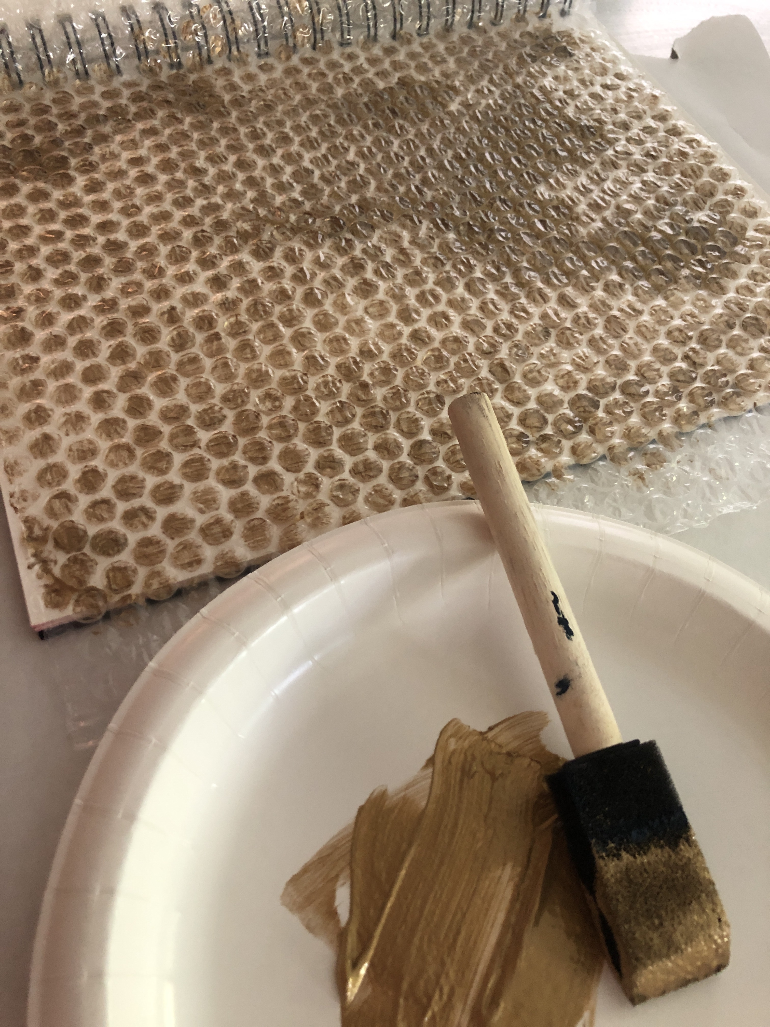 - follow demo for applying a dot pattern with paint + bubble wrap