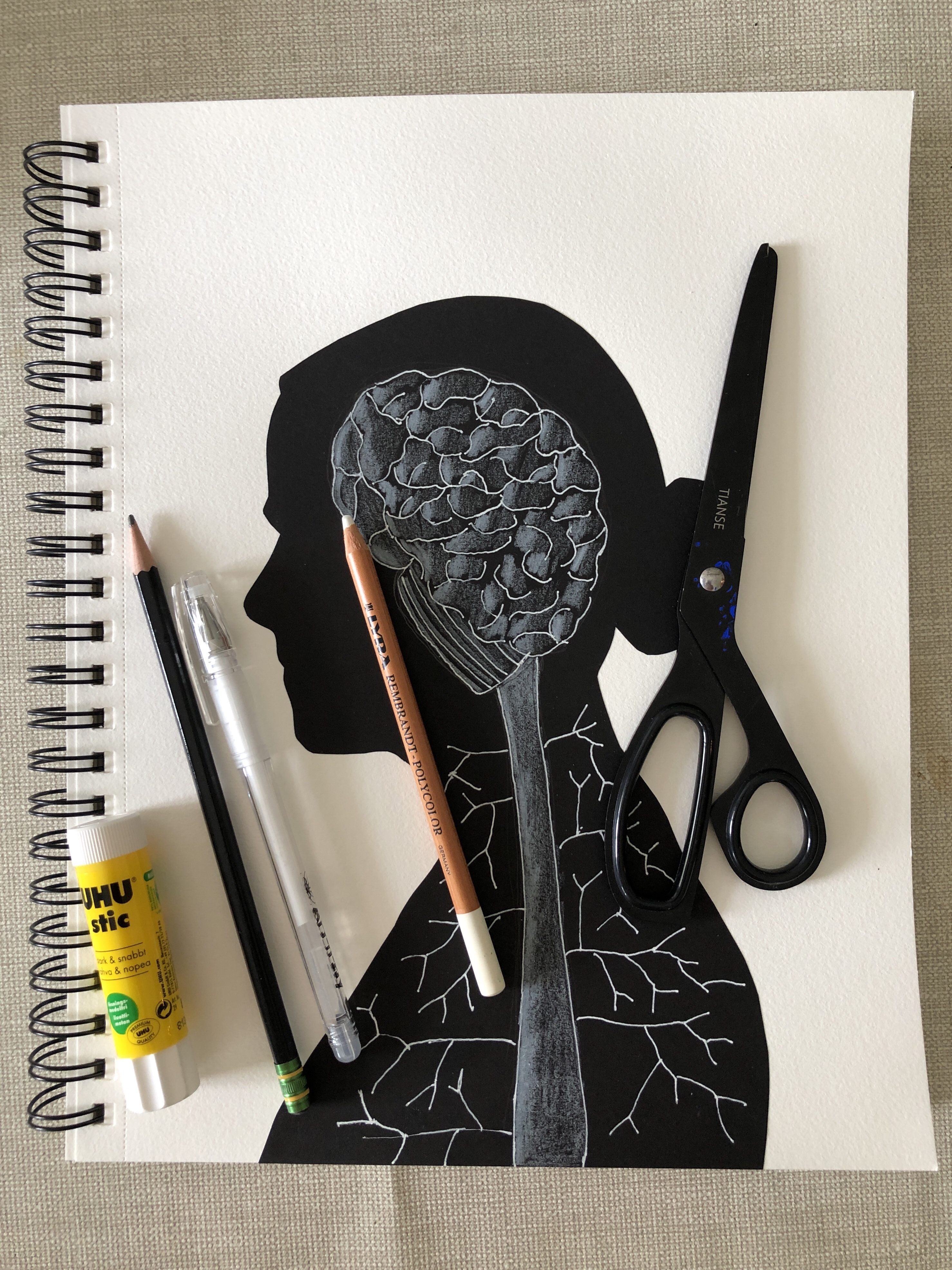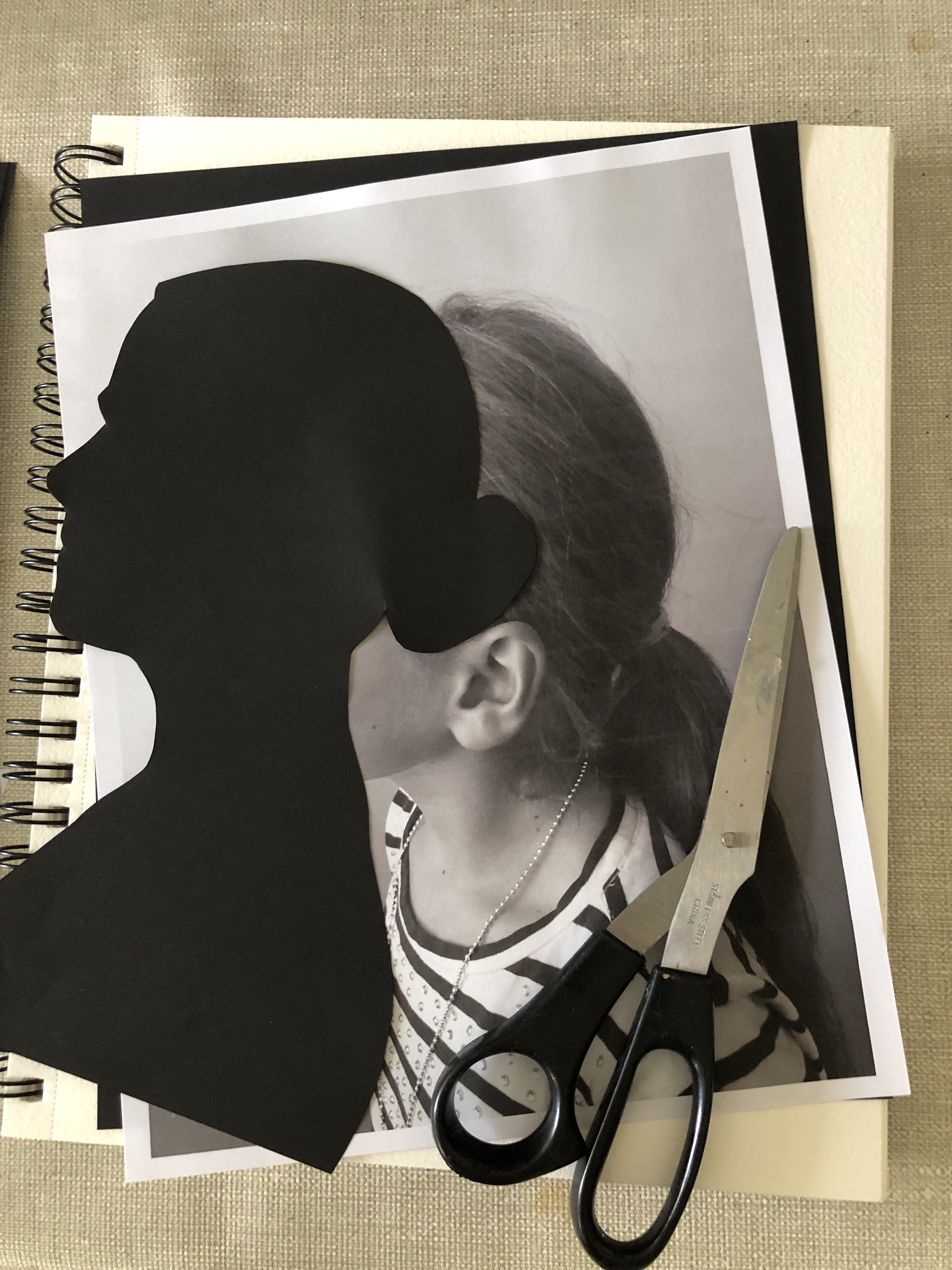 - close up photo of silhouette printed out on 8.5 x 11 paper [black and white photo, against a plain background works best]