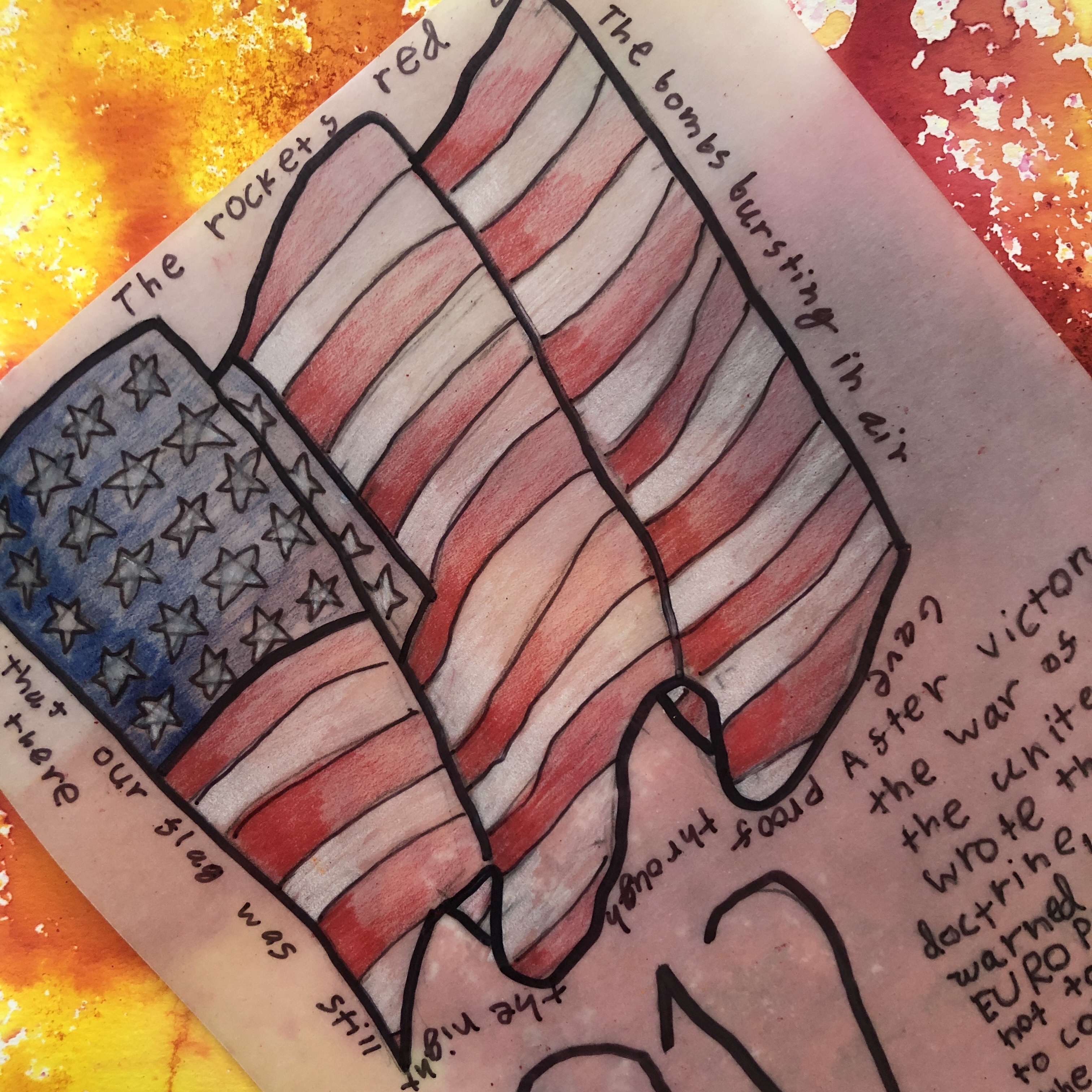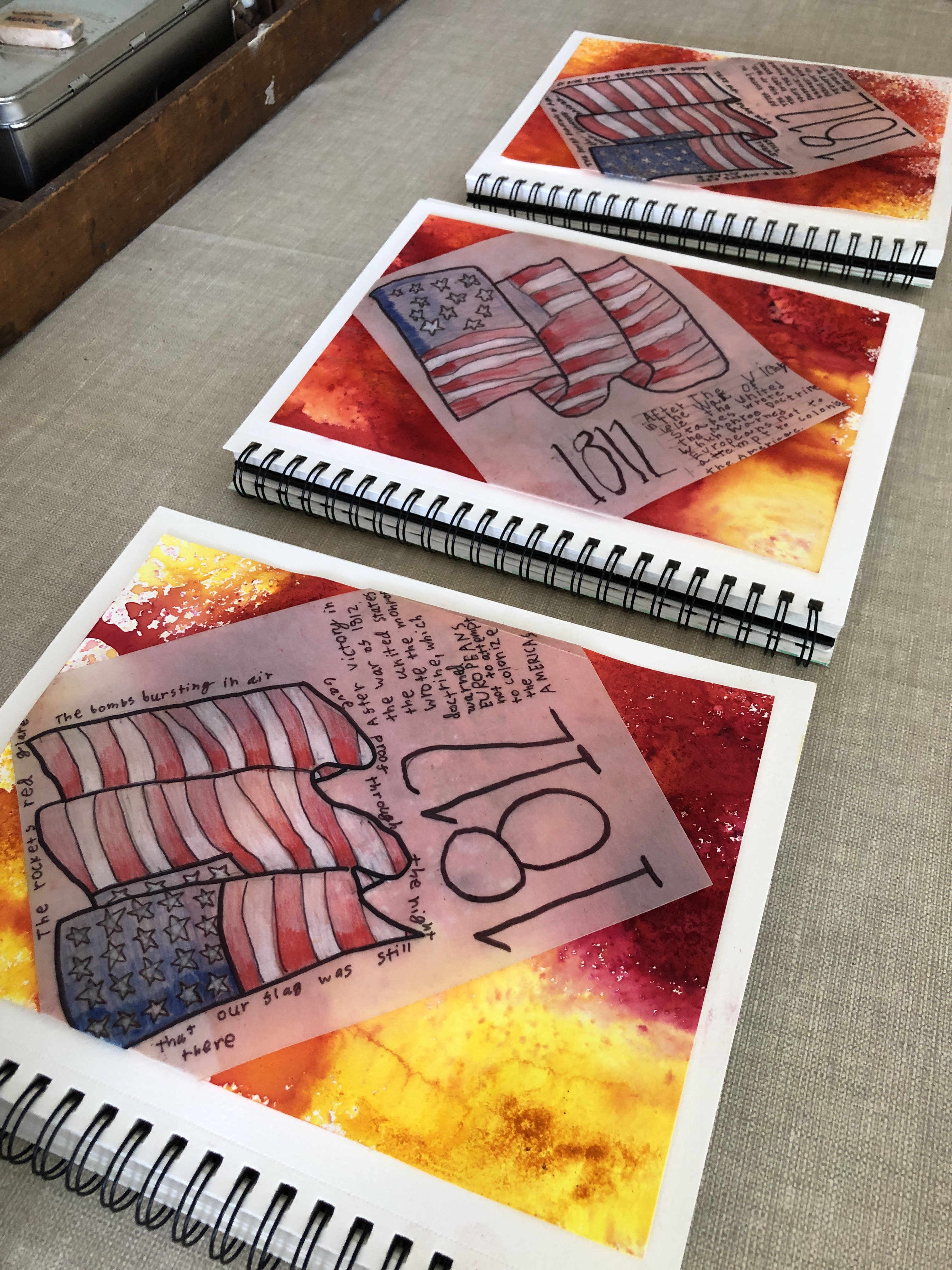 - using watercolor crystals to create an explosive background [another idea: see video for a paint blowing technique from a past project]