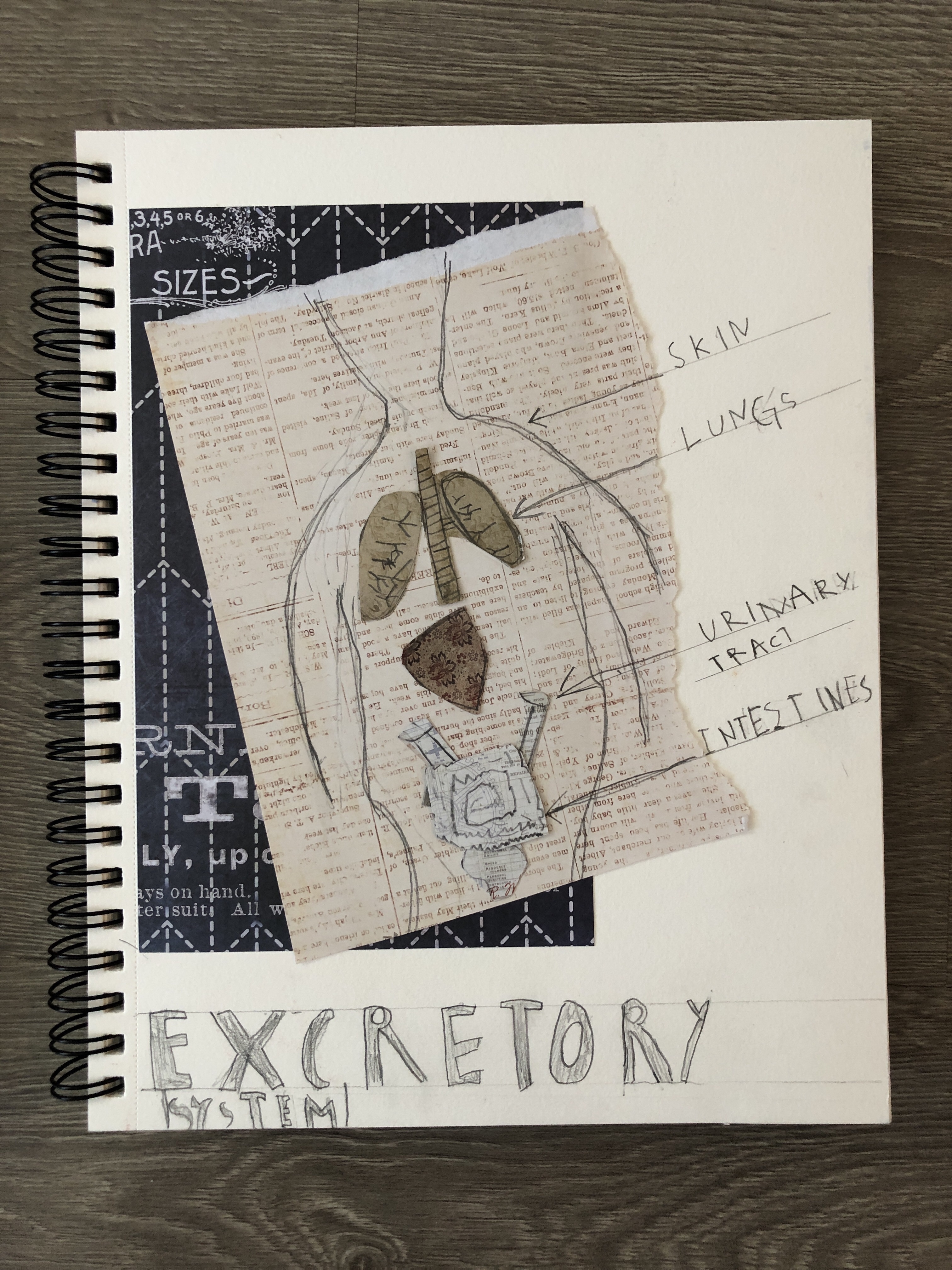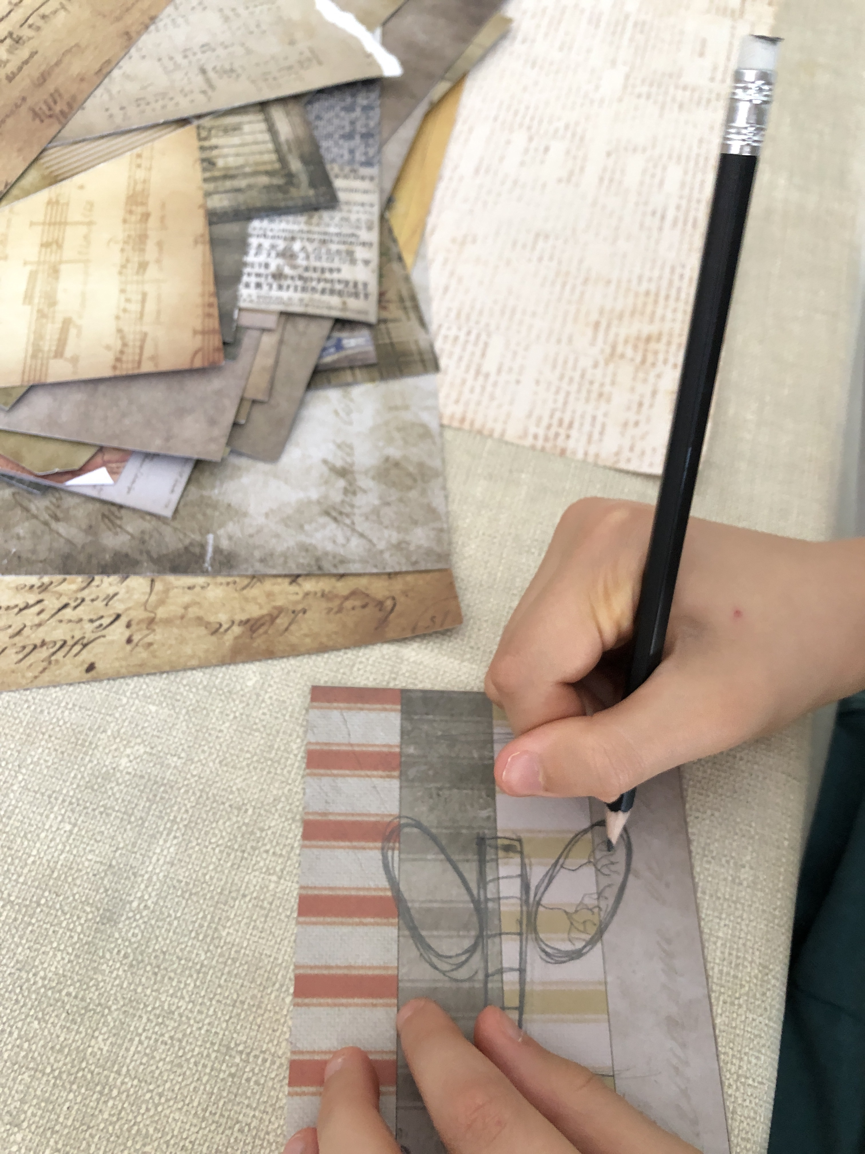- collage: art made by sticking various materials such as and pieces of paper on to a backing