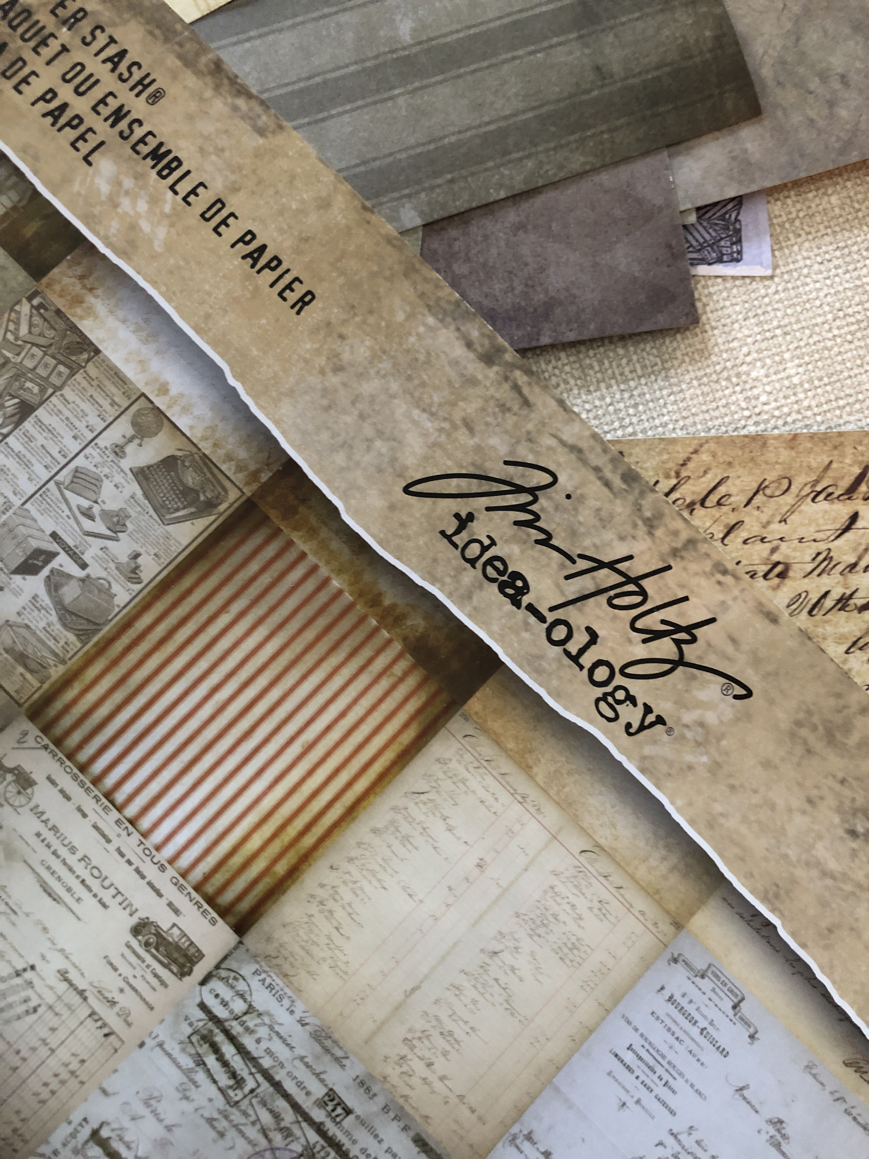 - decorative papers: link to french industrial paper by tim holtz idea-ology [other ideas: newspaper, magazine, book pages, trader joe’s frequent flyer, paper bag]