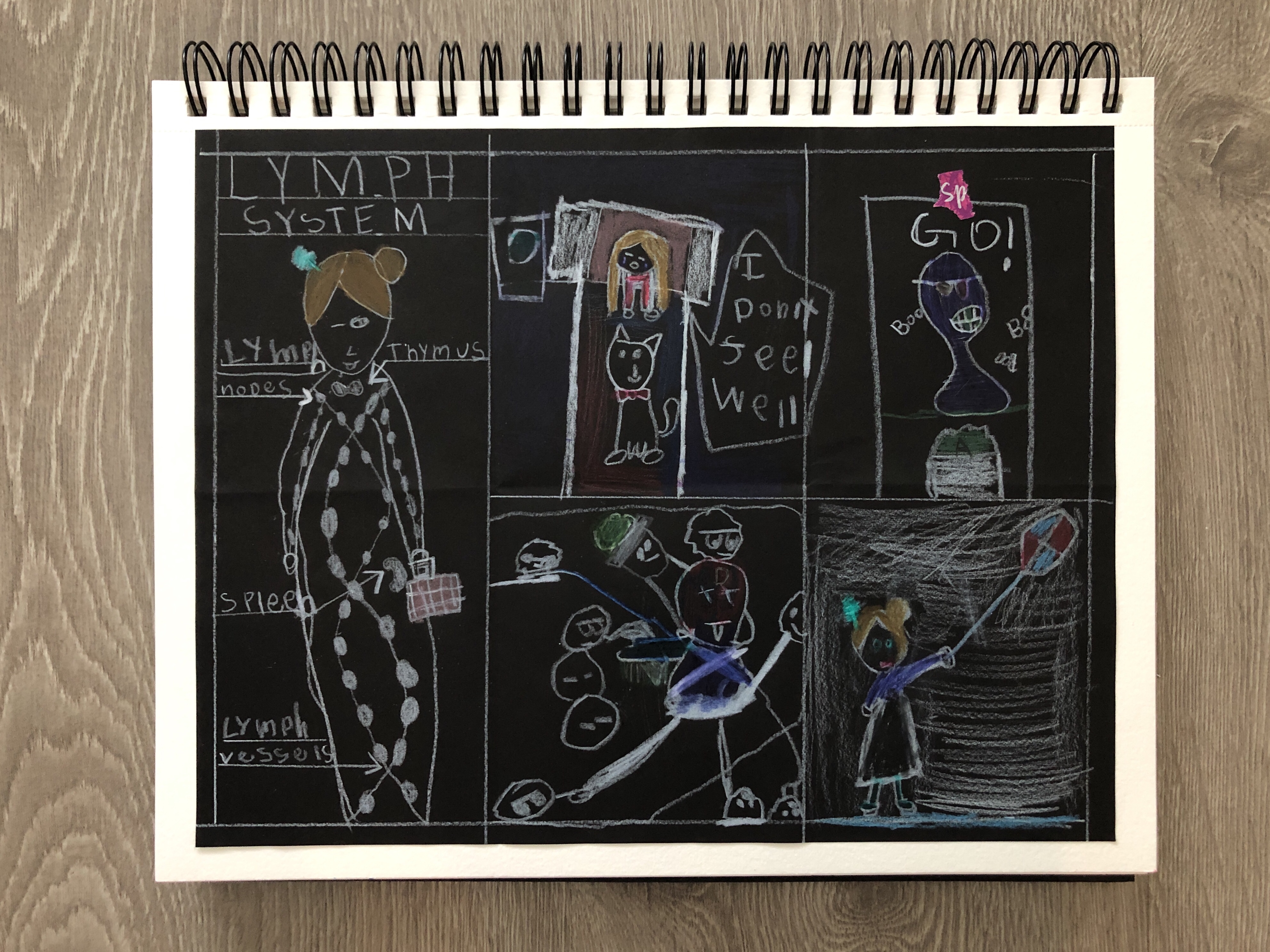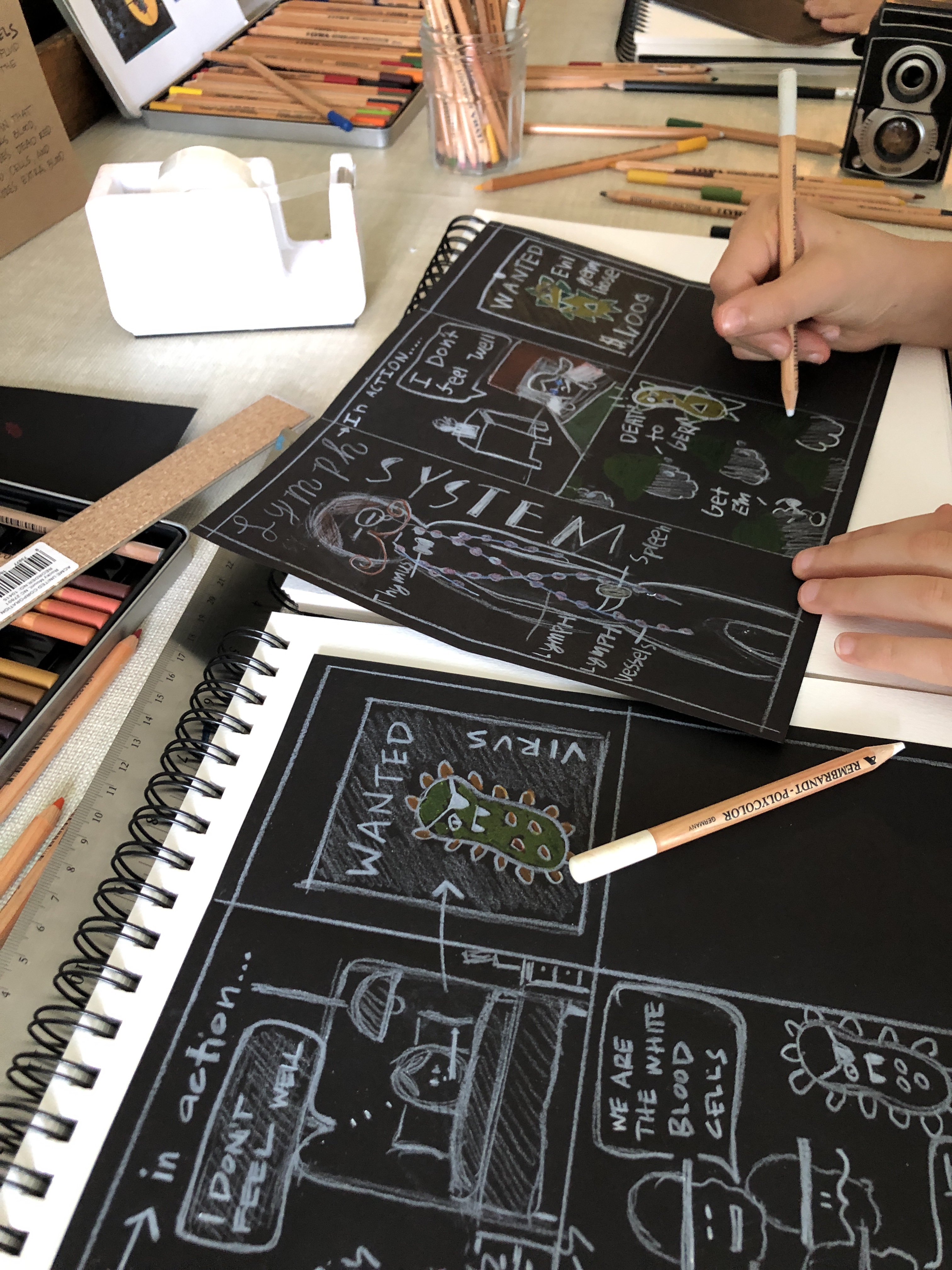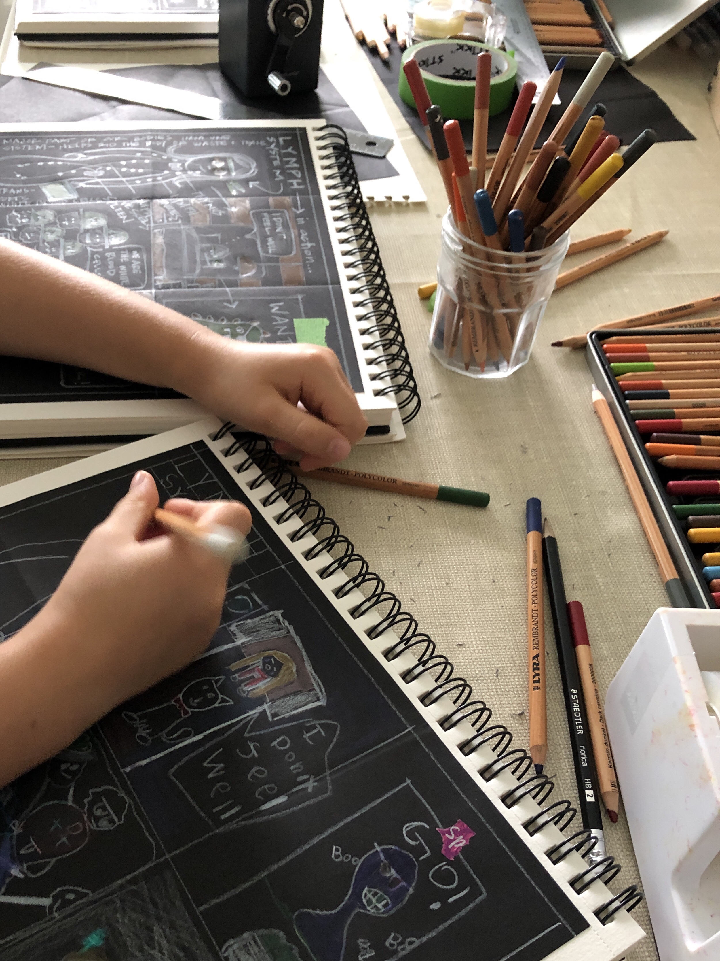 - drawing with color pencil on black paper