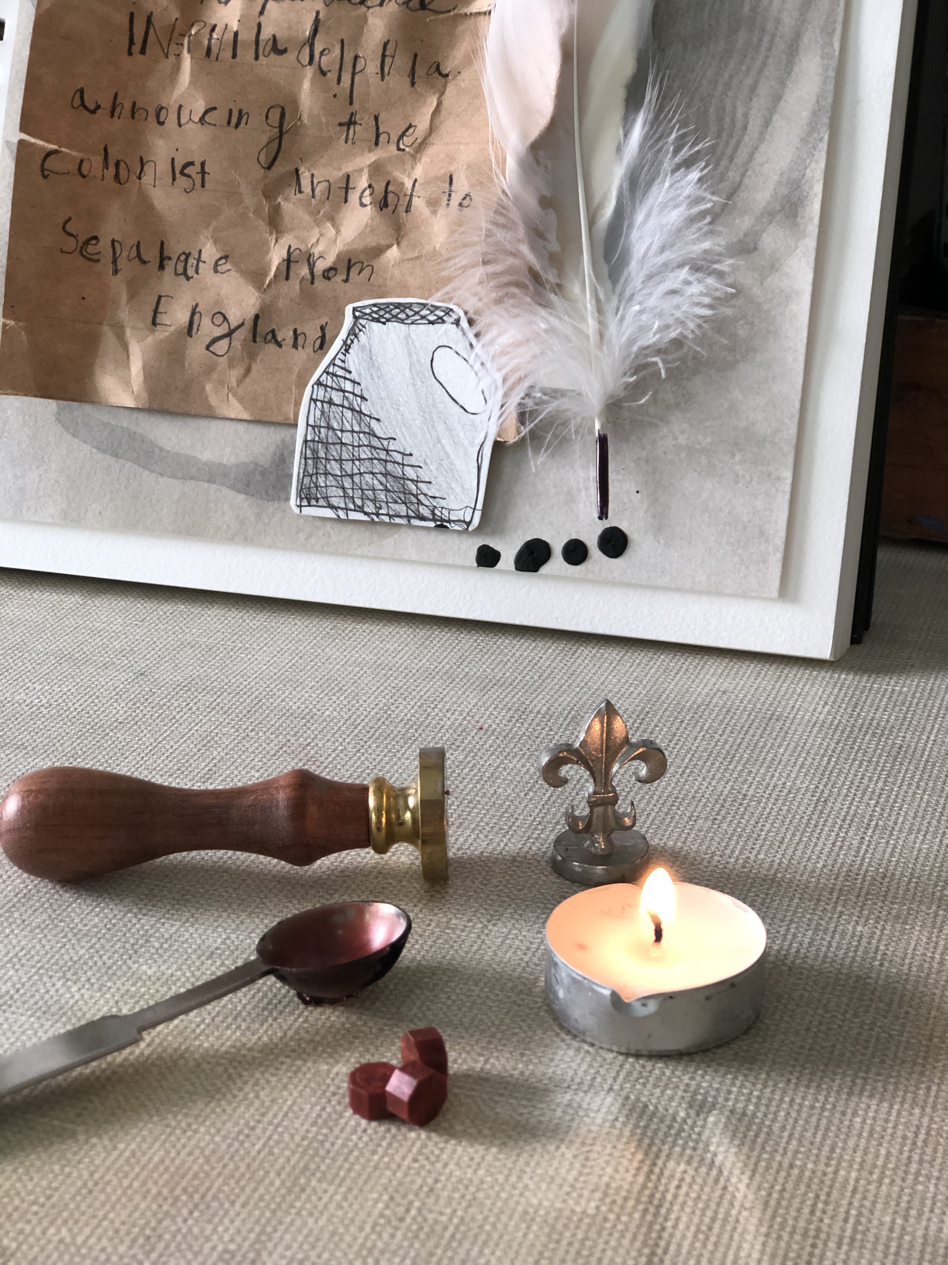 - items to create a wax seal: wax pieces, measuring spoon, tea candle + seal