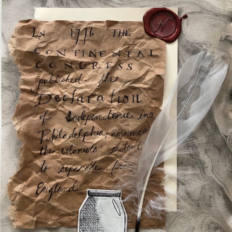 - items to create a wax seal: wax pieces, measuring spoon, tea candle + seal