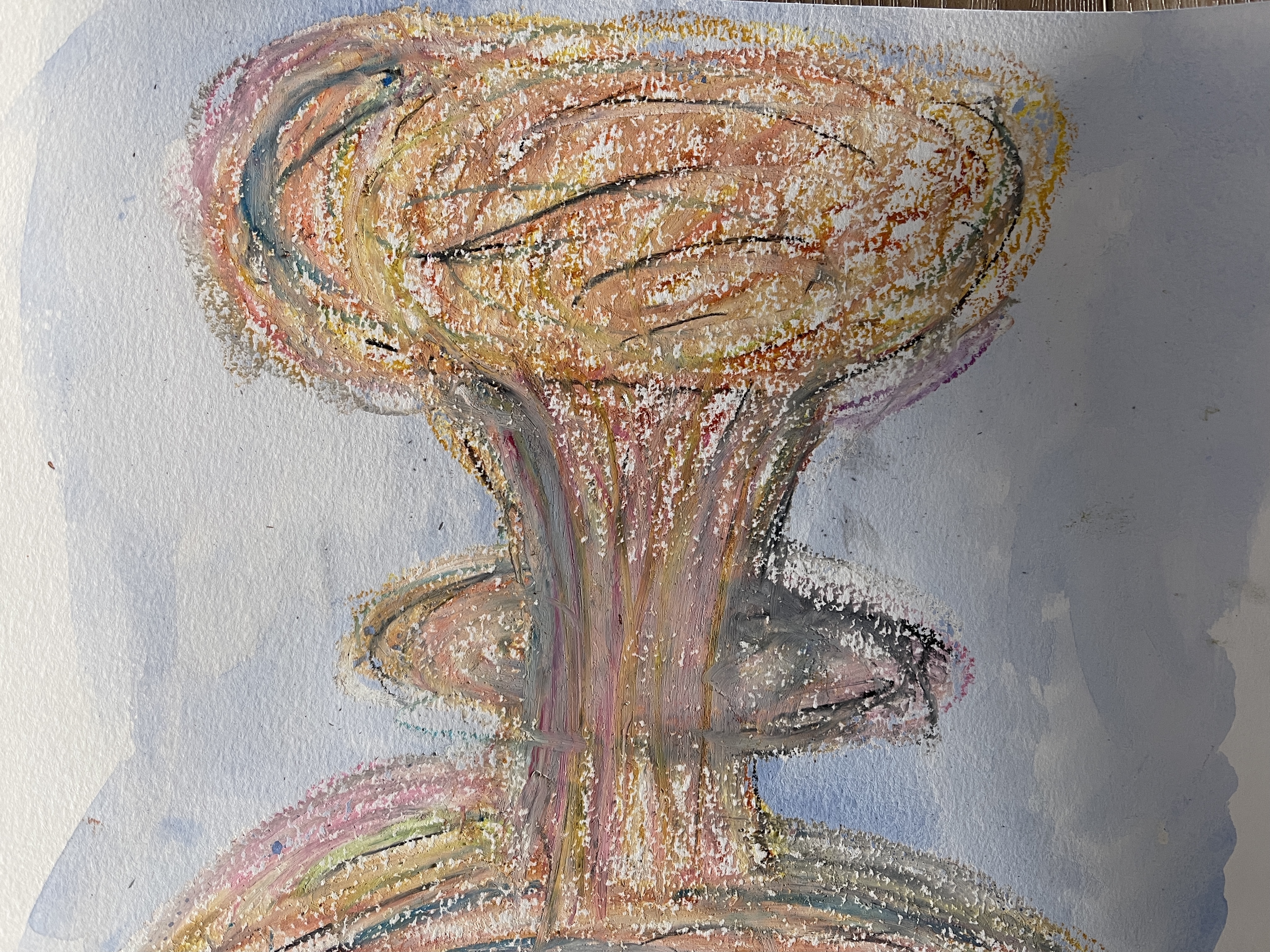 WEEK 20.THE ATOMIC BOMB PART No.1 of 2 DESIGN SKILLS TO LEARN: impressionistic atomic bomb blending oil pastelspaint resist between watercolor and oil pastel color theory: cobalt blue + 2x violet + white = periwinkle SEE VIDEO FOR ATOMIC BOMB OIL PASTEL DRAWING HAVE A CREATIVE WEEK! Share this: Click to share on X (Opens in new window) X Click to share on Facebook (Opens in new window) Facebook More Click to share on Pinterest (Opens in new window) Pinterest Like Loading...
